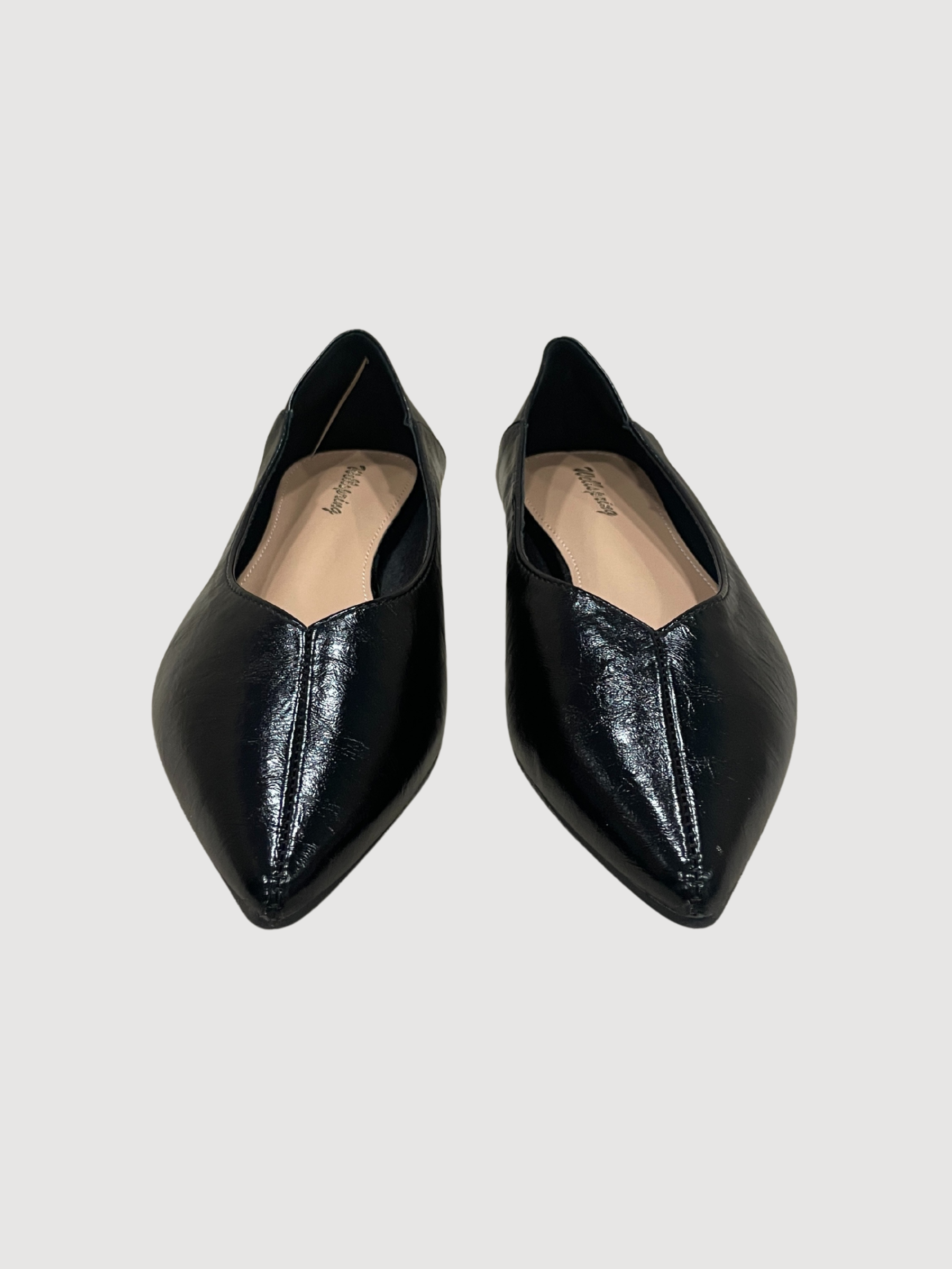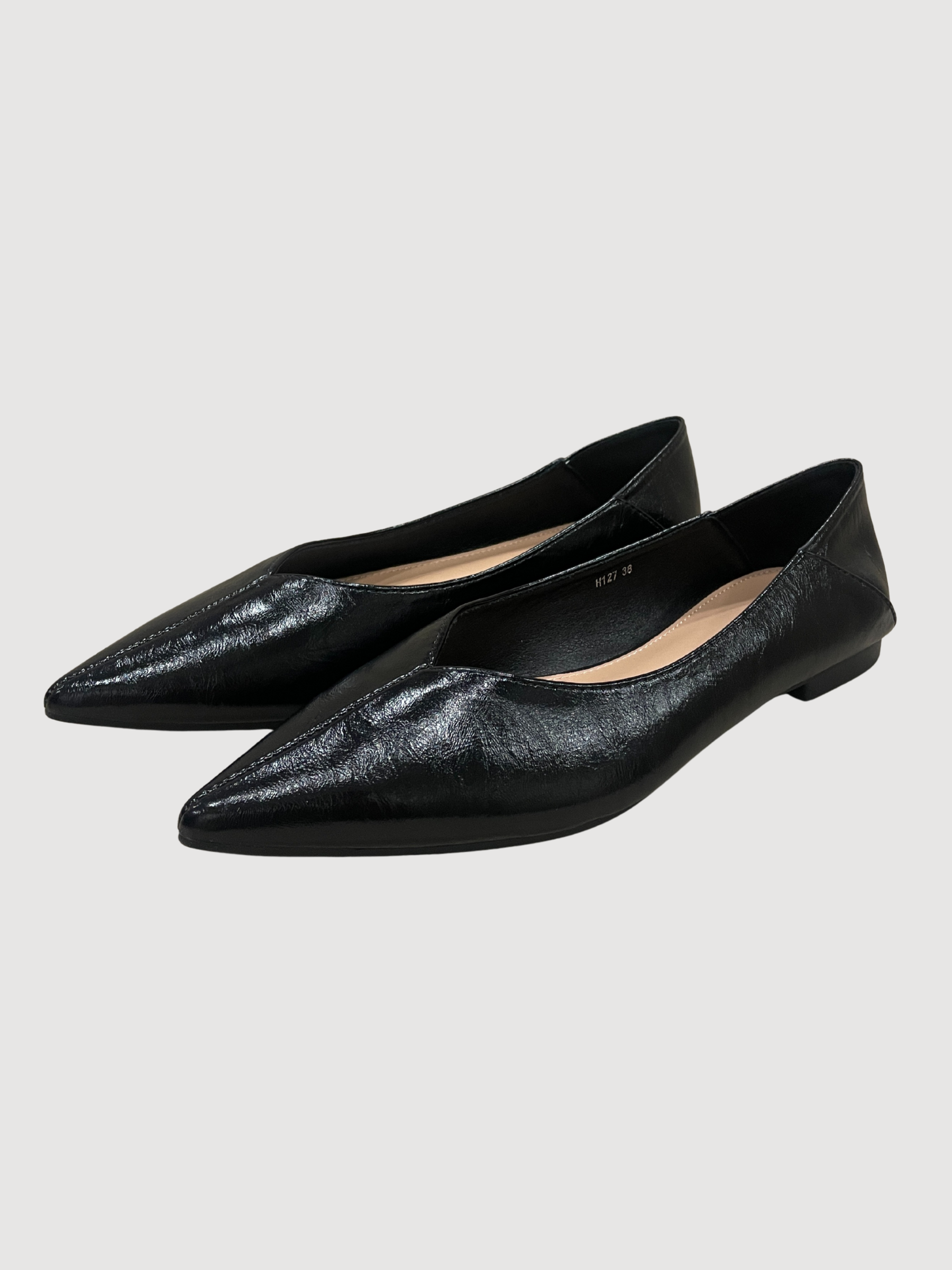 Ballerina a punta nera in ecopelle. Possibilità di portarle come flat abbassando il tallone.