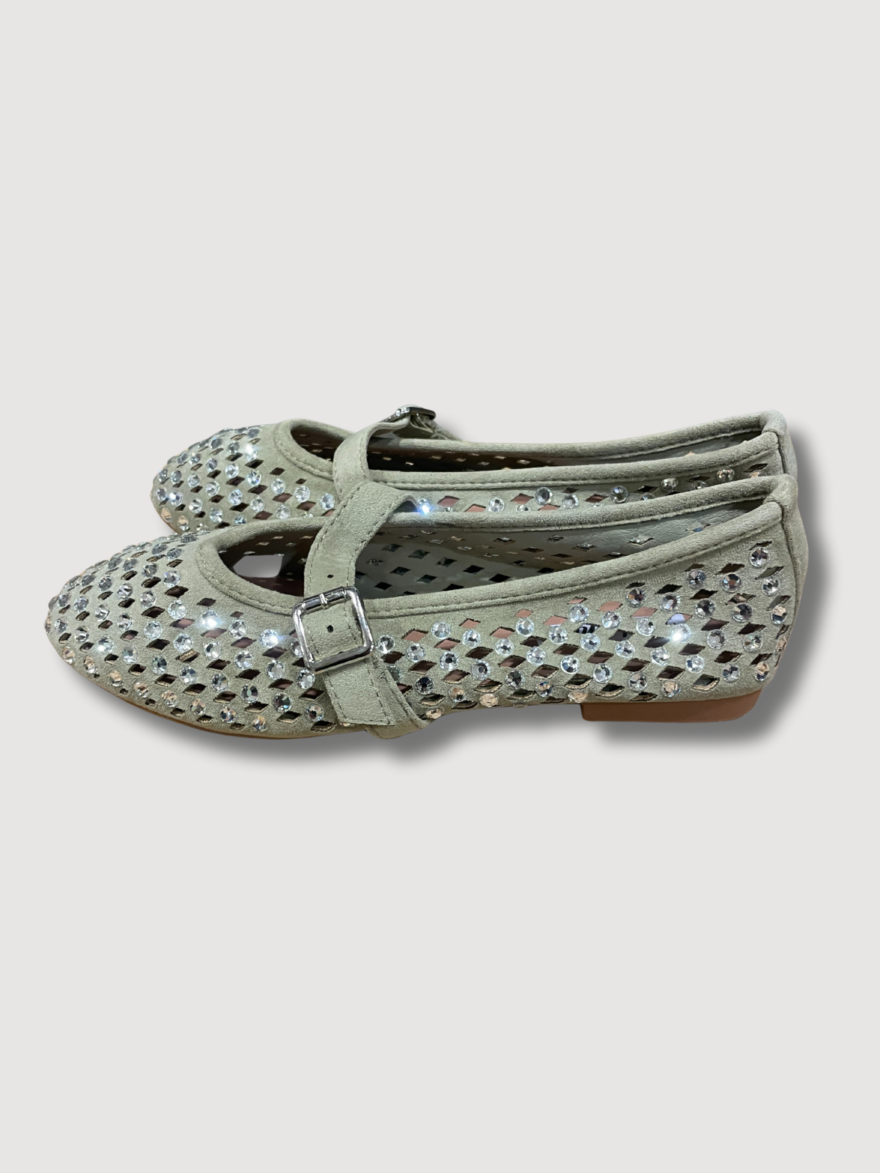 Ballerine traforate con strass e cinturino - verde.