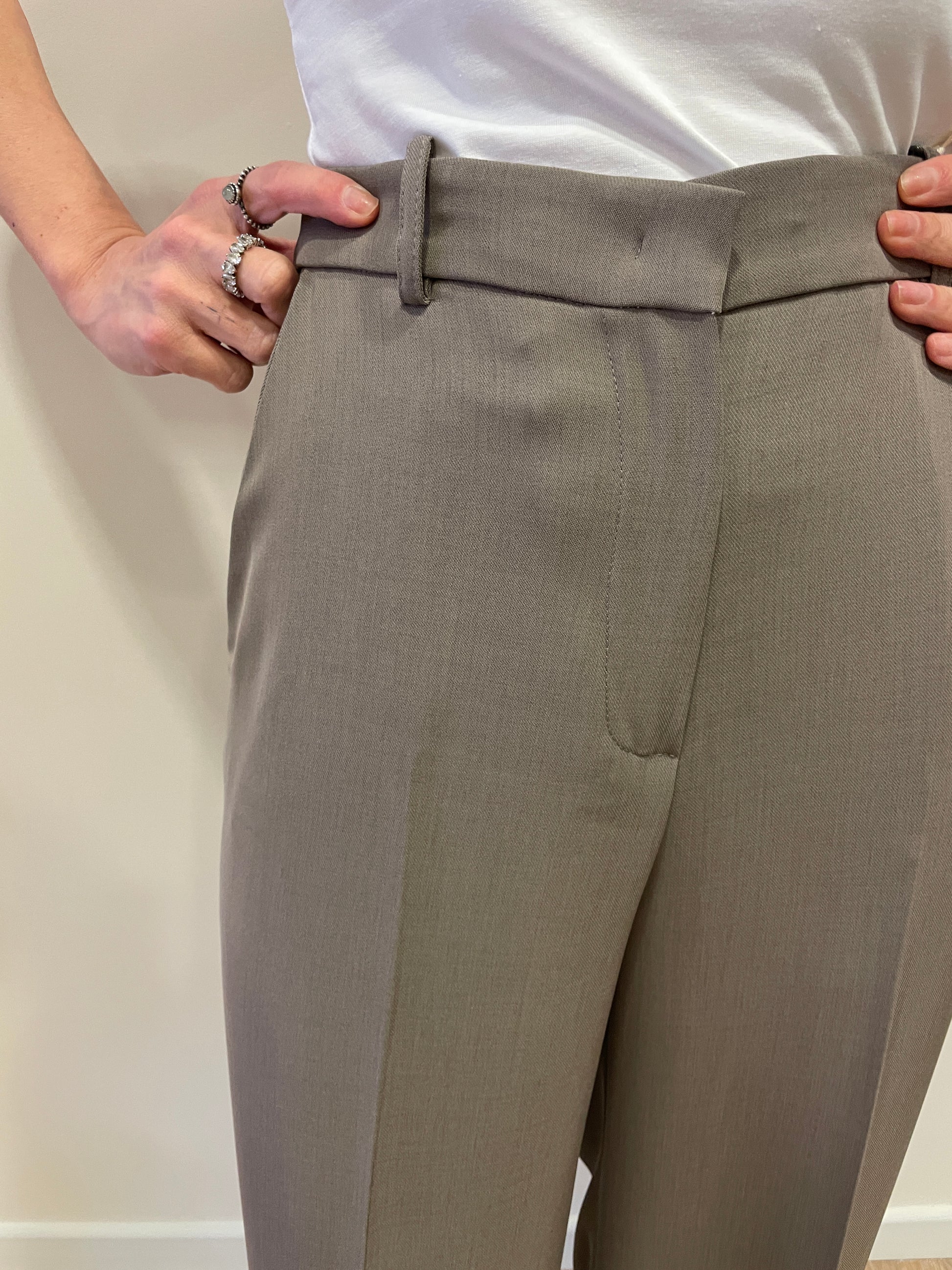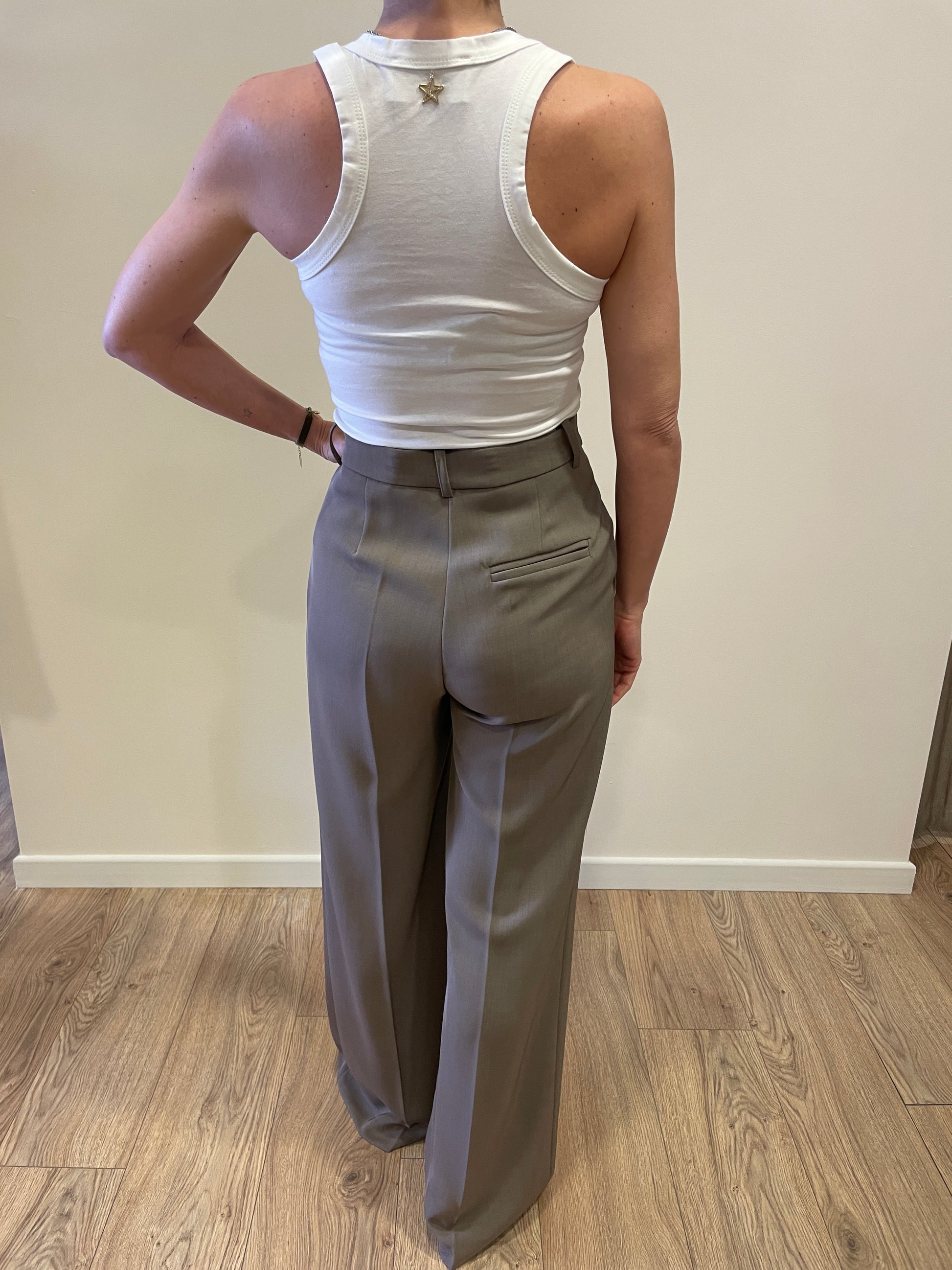 GOLD - Pantalone Veronica a palazzo dritto color fango.