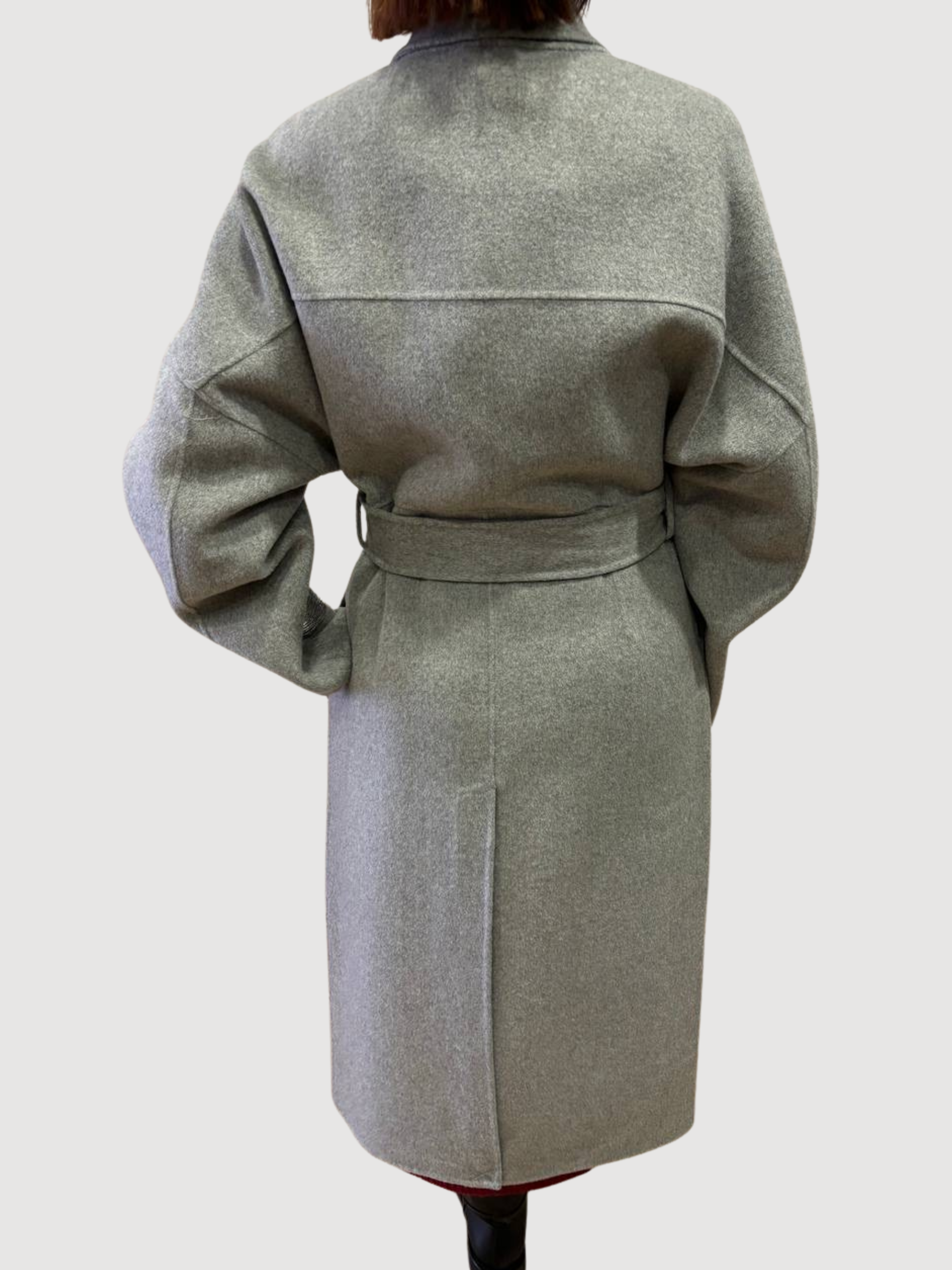HAVEONE - Cappotto grigio handmade in misto lana con cintura