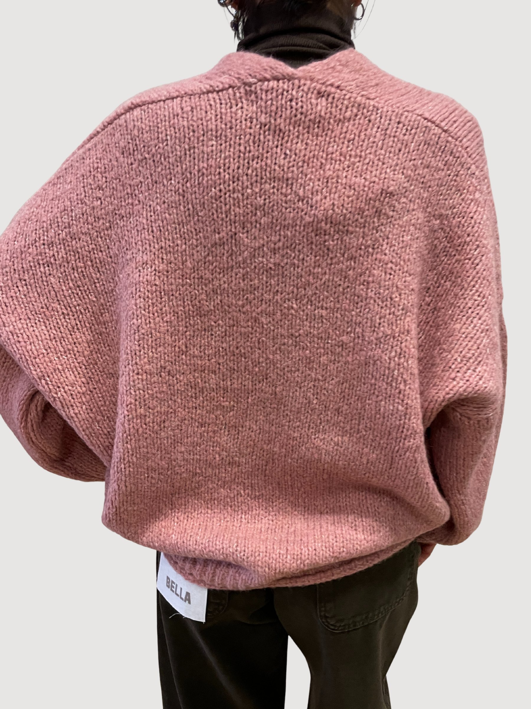 HAVEONE - Cardigan a ovetto con bottoni e tasche frontali. Disponibile in nero, moro, burro e rosa.