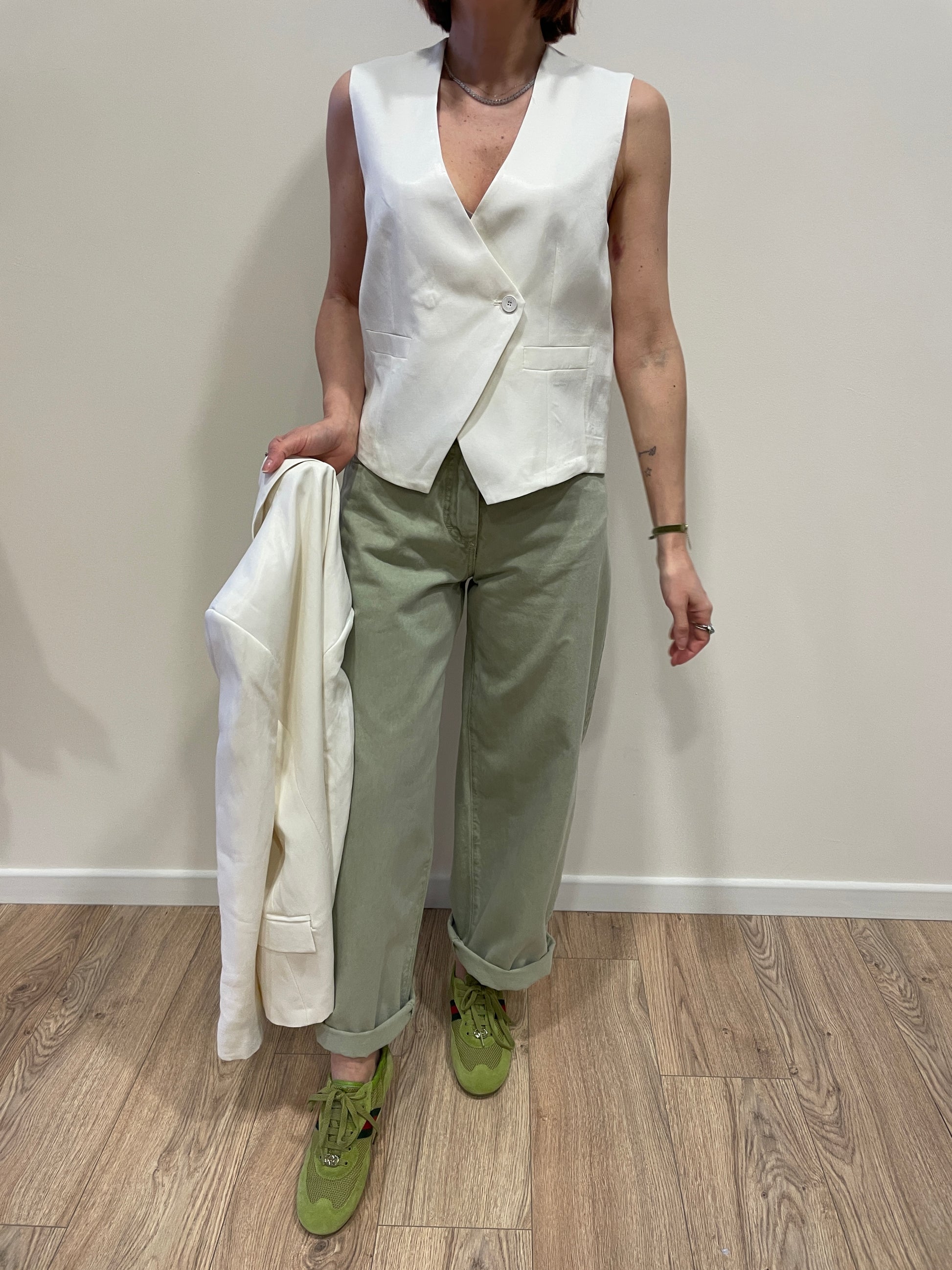 HAVEONE - Jeans Bella in denim verde salvia baggy fit.