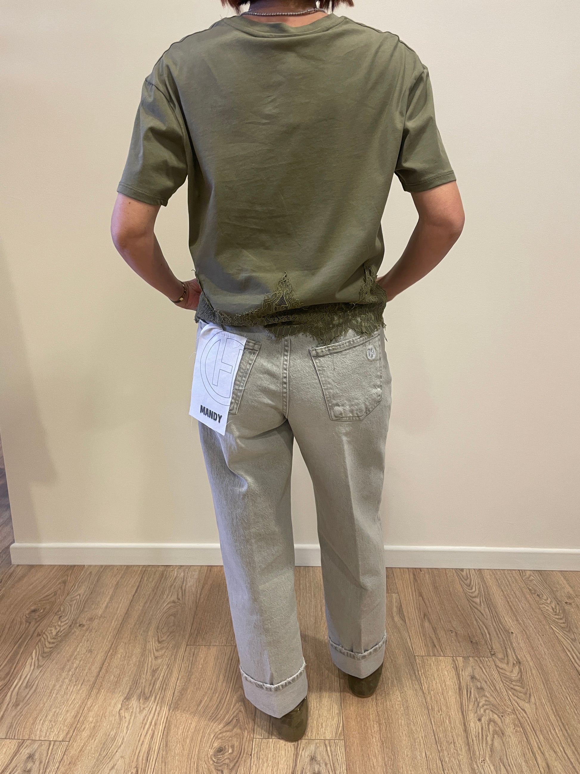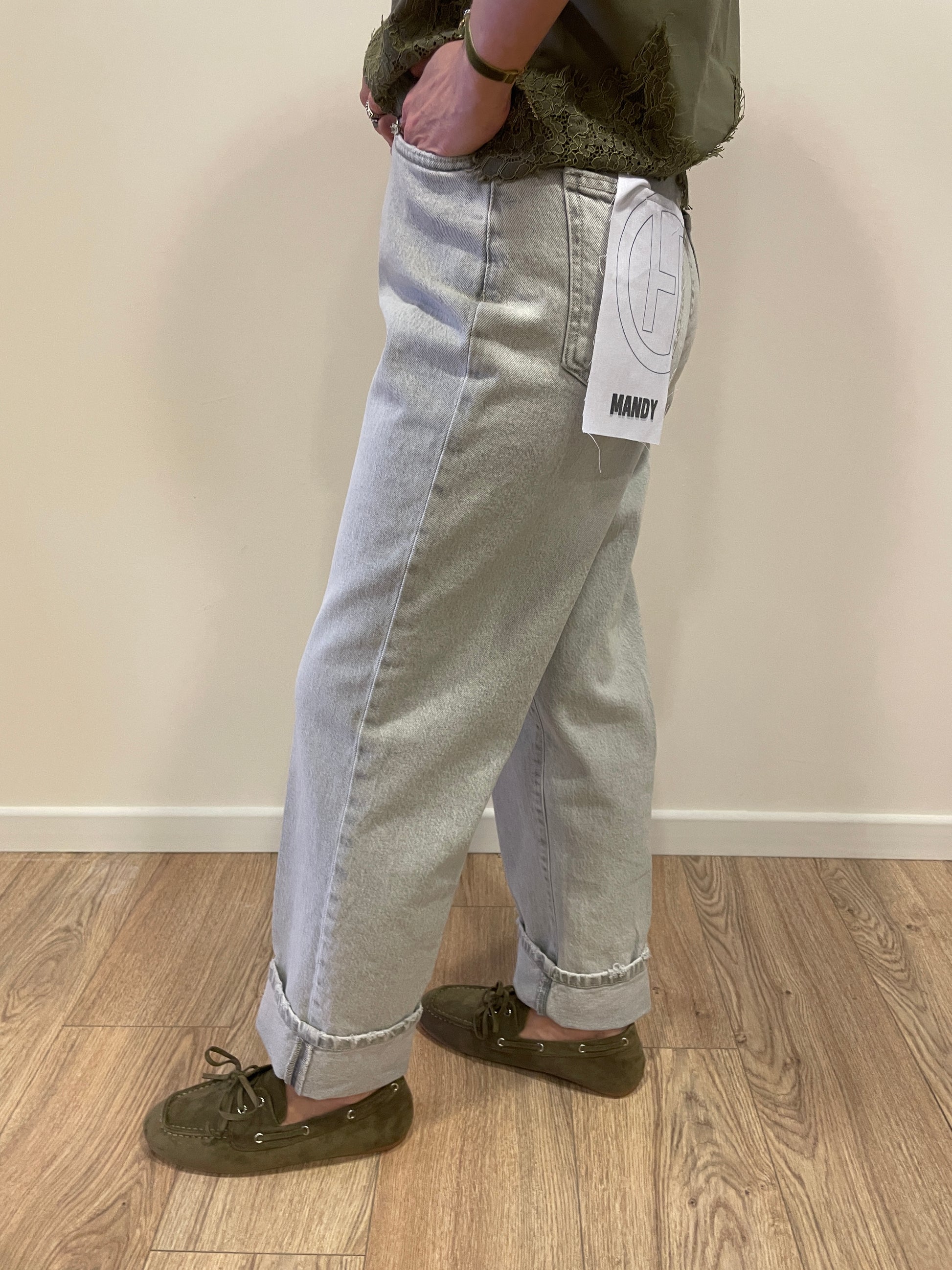 HAVEONE - Jeans Mandy grigio con cintura e risvolto.