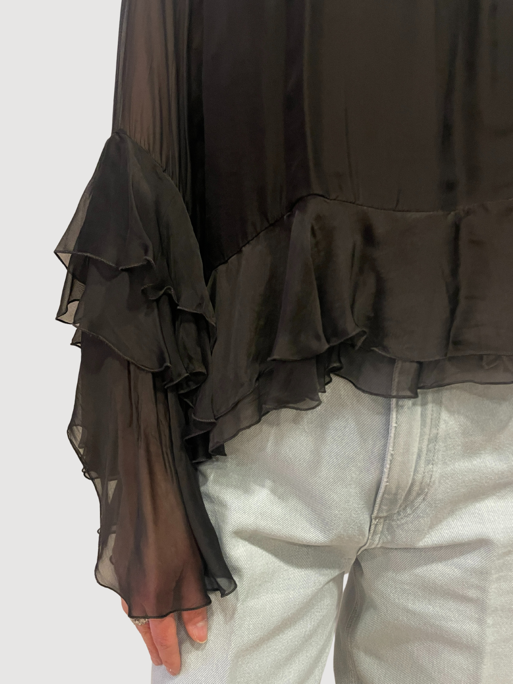 KAOS - Camicia testa moro arricciata con top e volant.