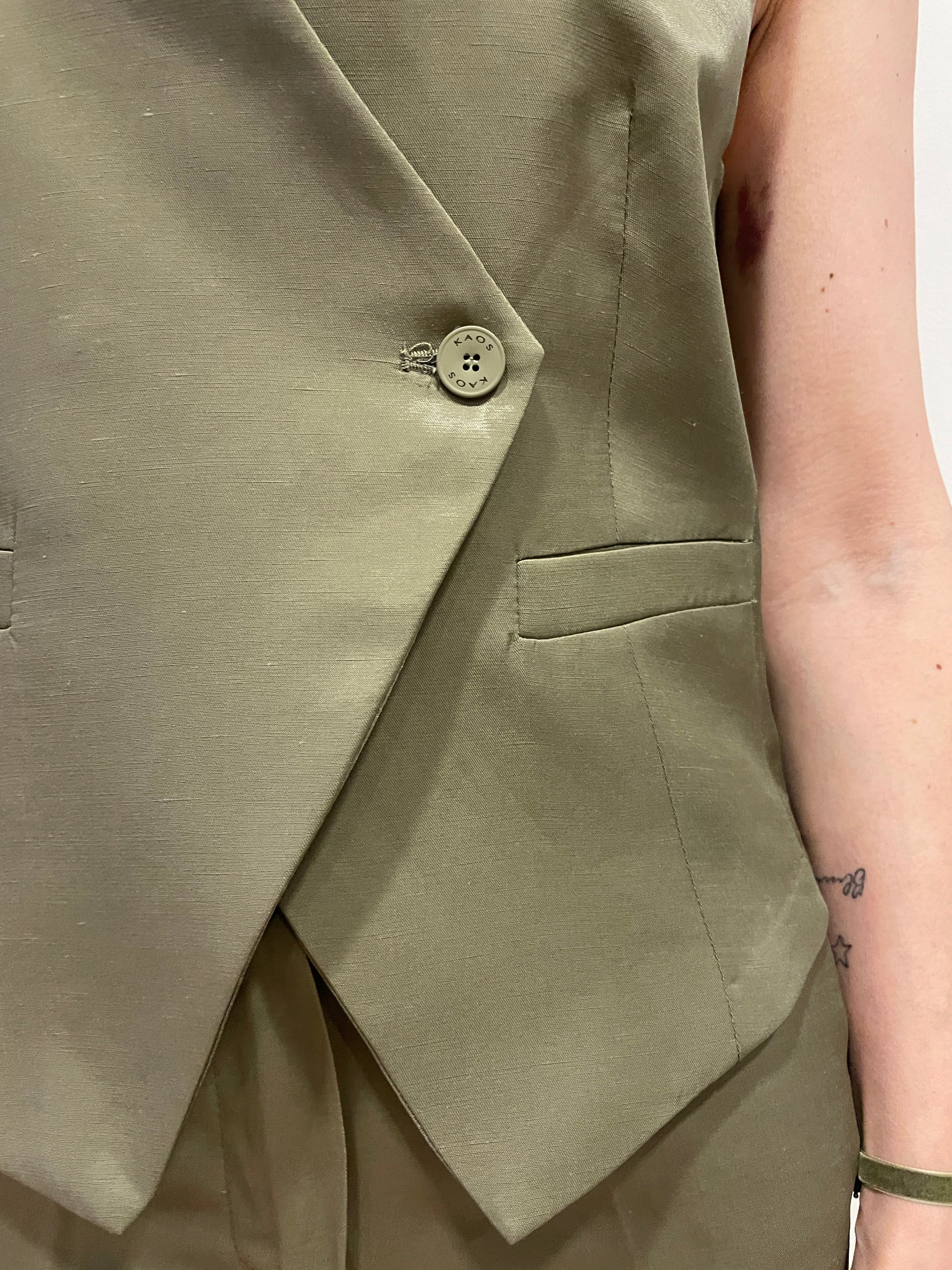 KAOS - Gilet a doppiopetto color verde oliva con viscosa.