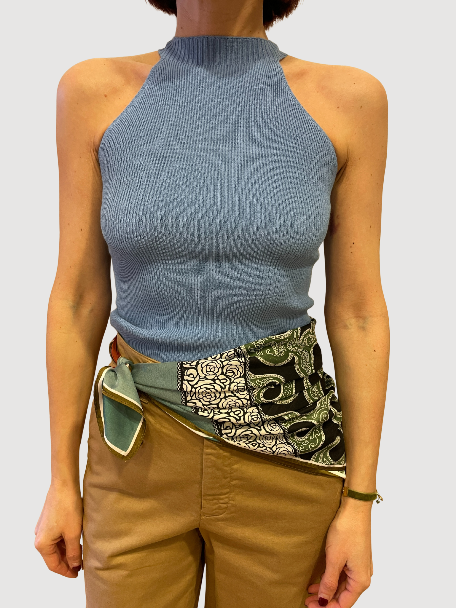 KONTATTO - Canotta in misto viscosa a costine con scollo all'americana. Disponibile in azzurro, nero, cioccolato, sangria e verde.