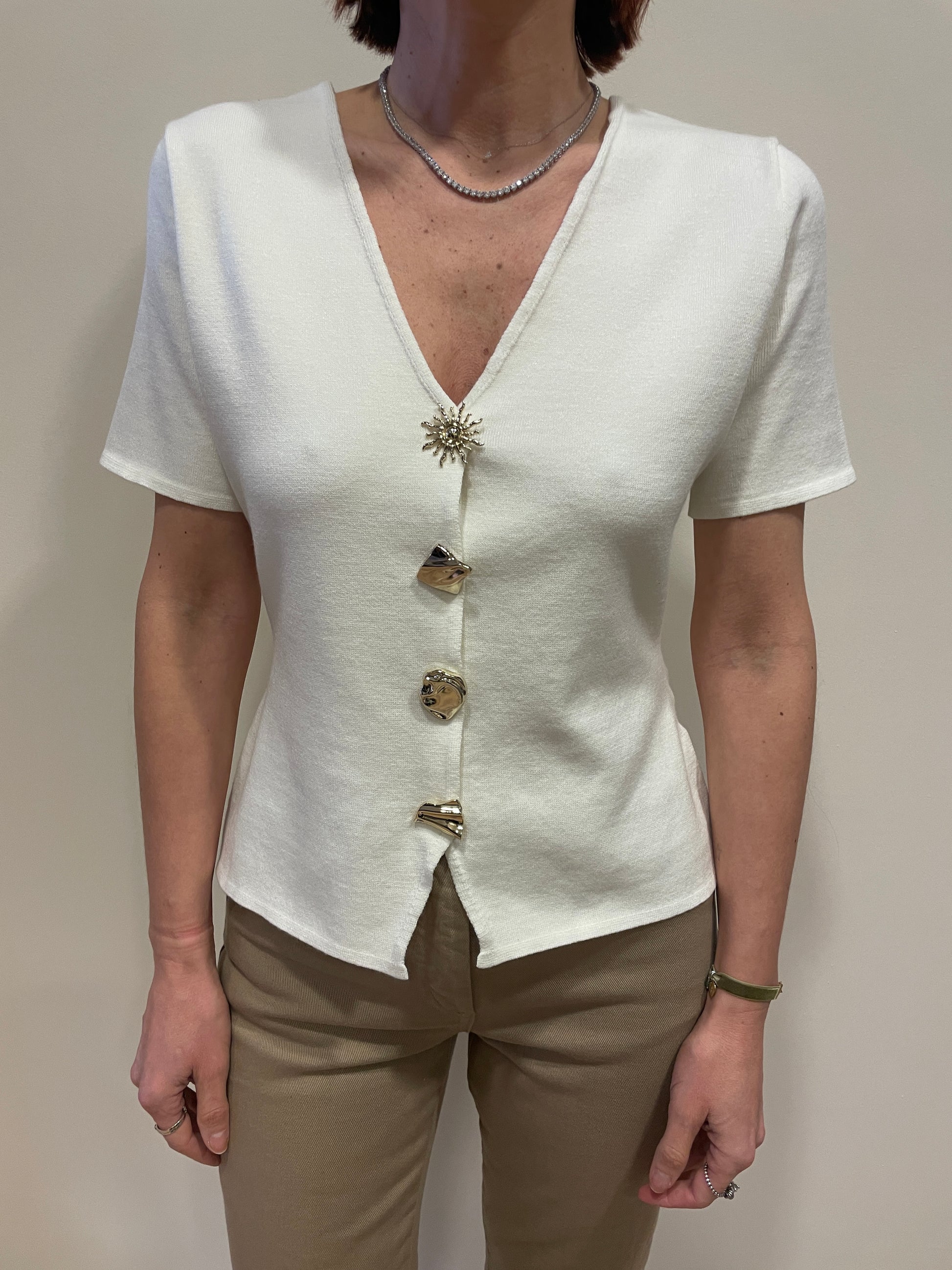 KONTATTO - Cardigan in misto viscosa a mezza manica con dettaglio bottoni a gioiello.