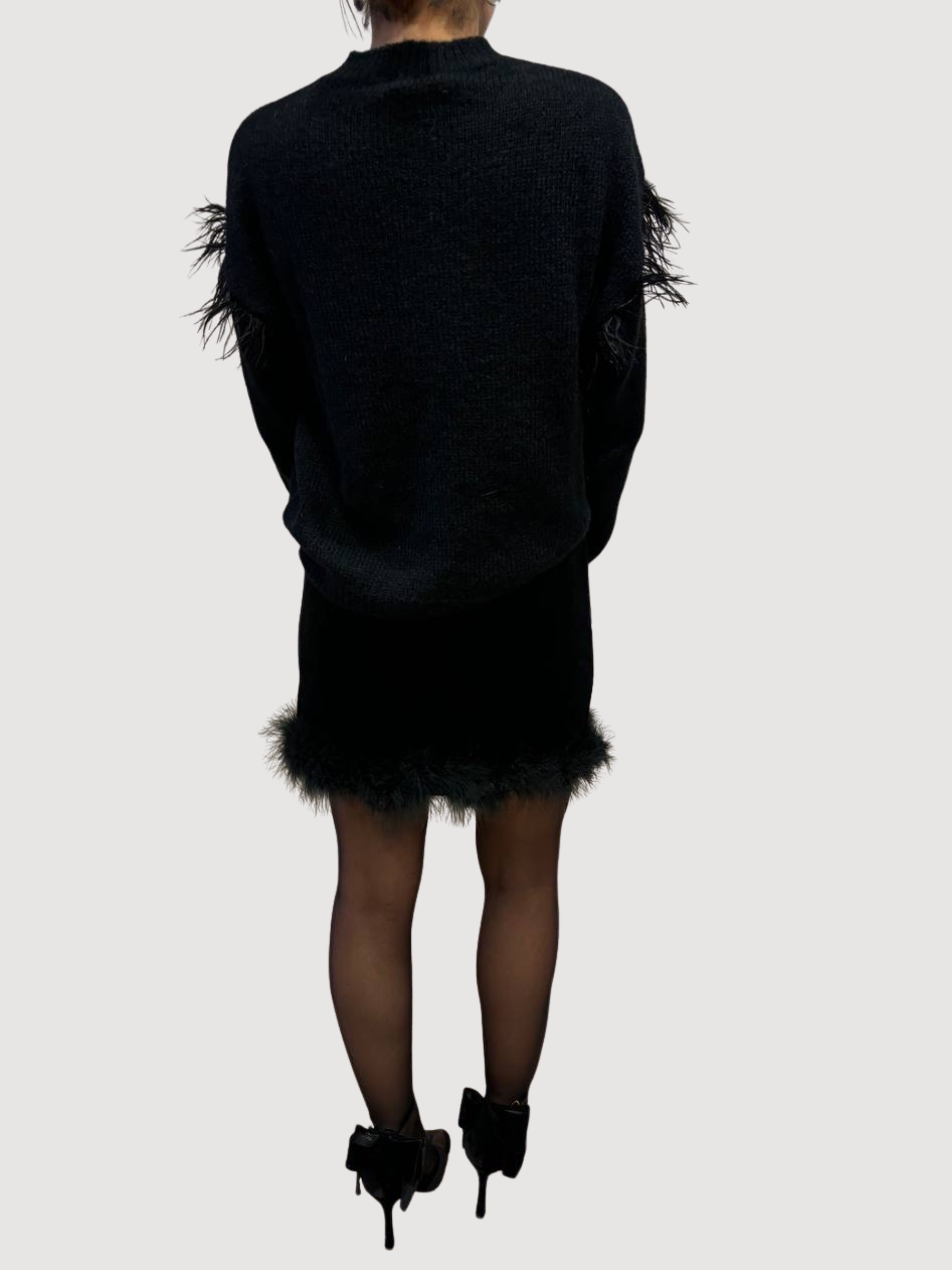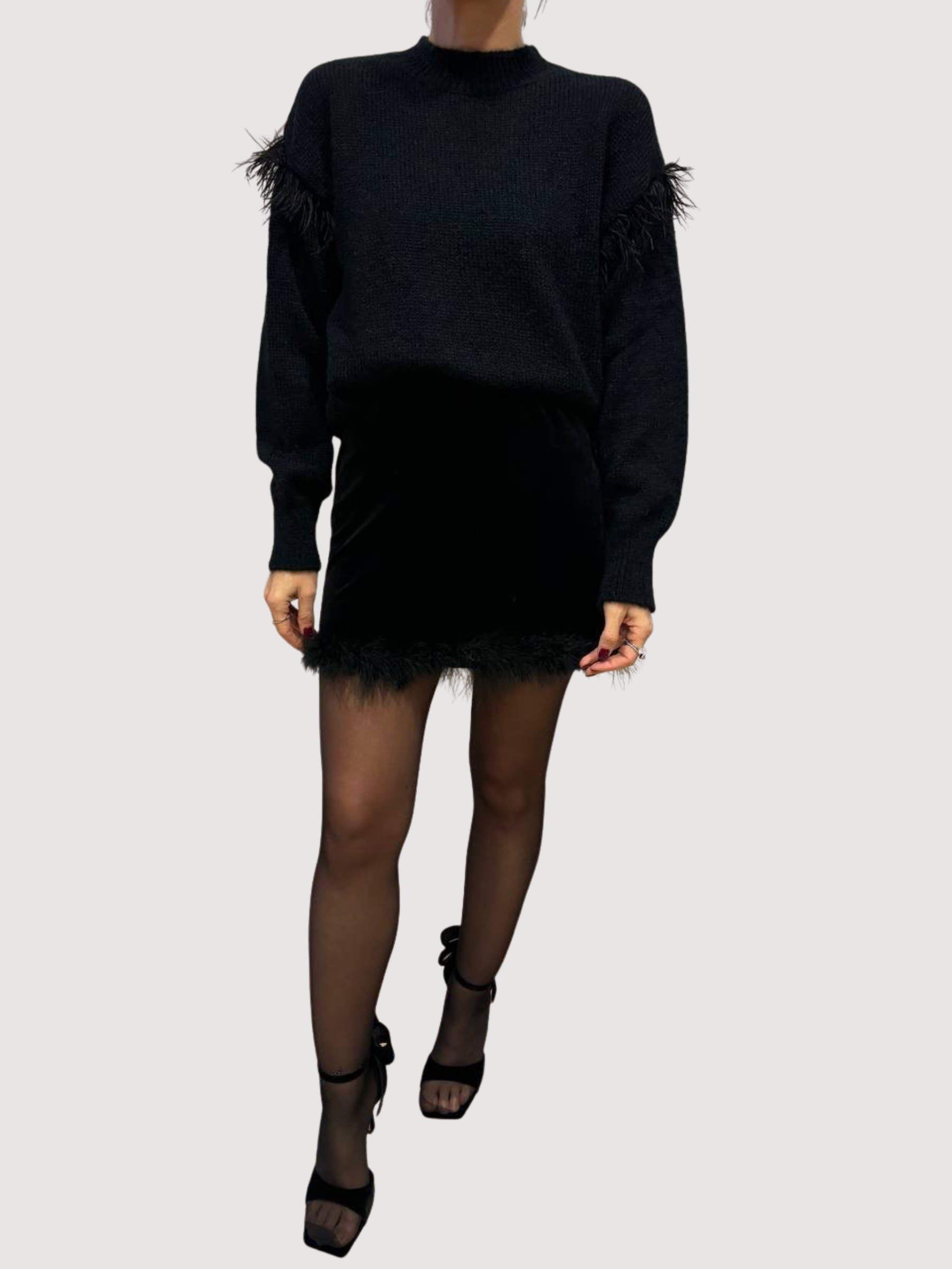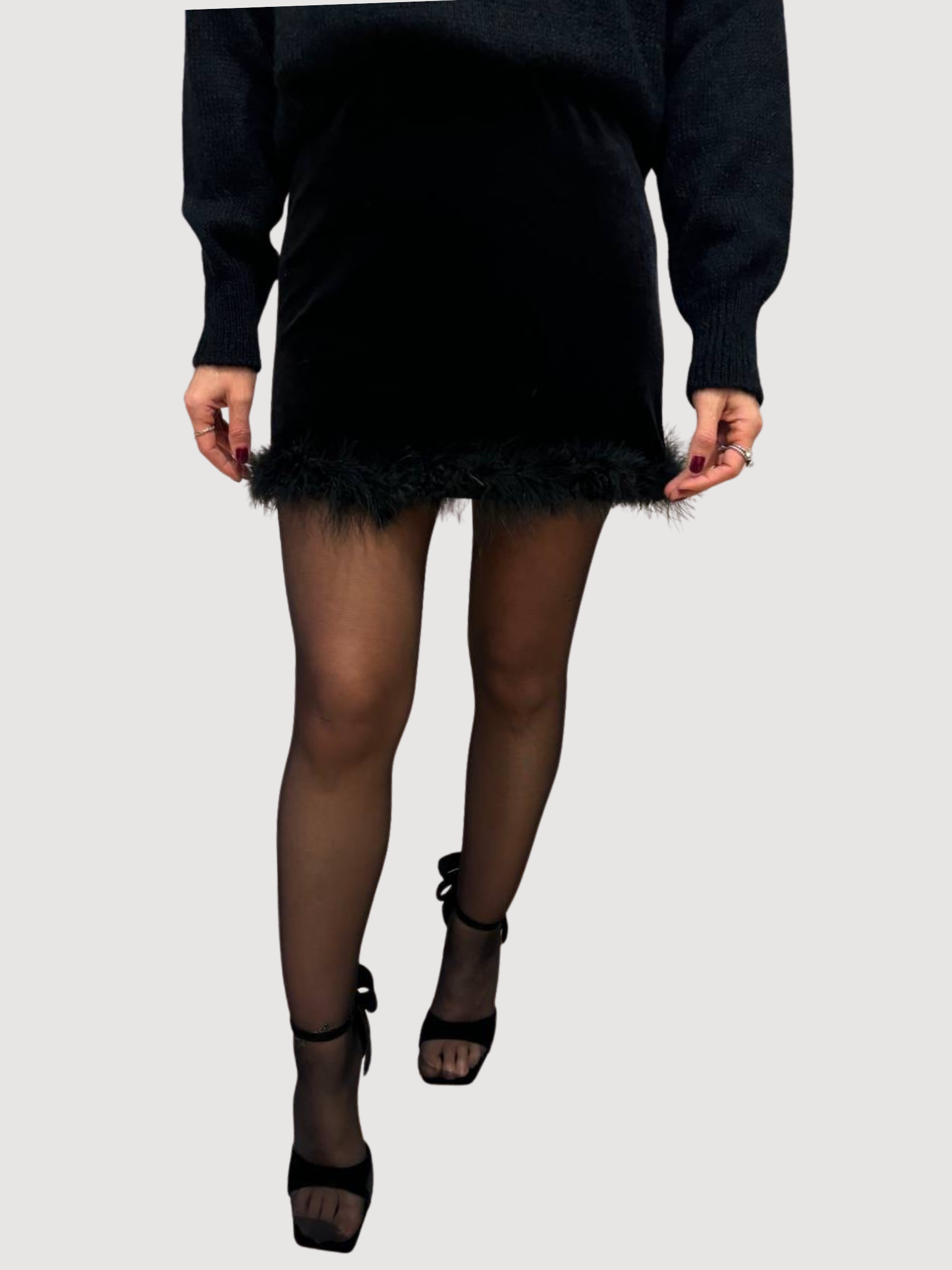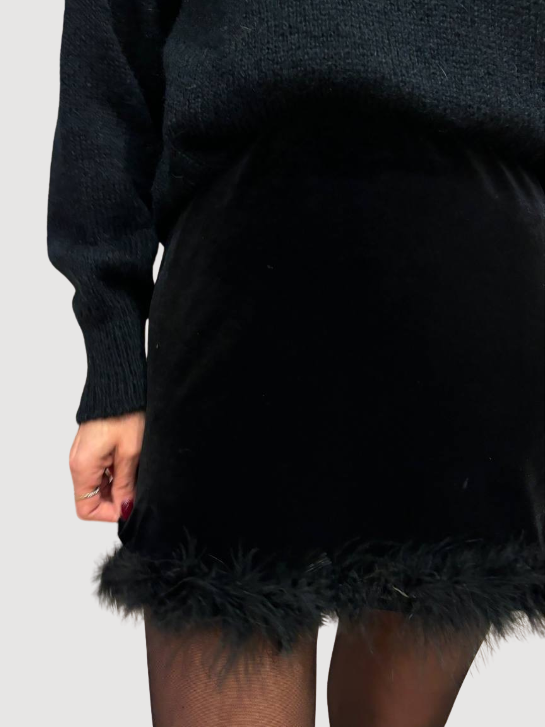 KONTATTO - Gonna nera corta in velluto con piumette.