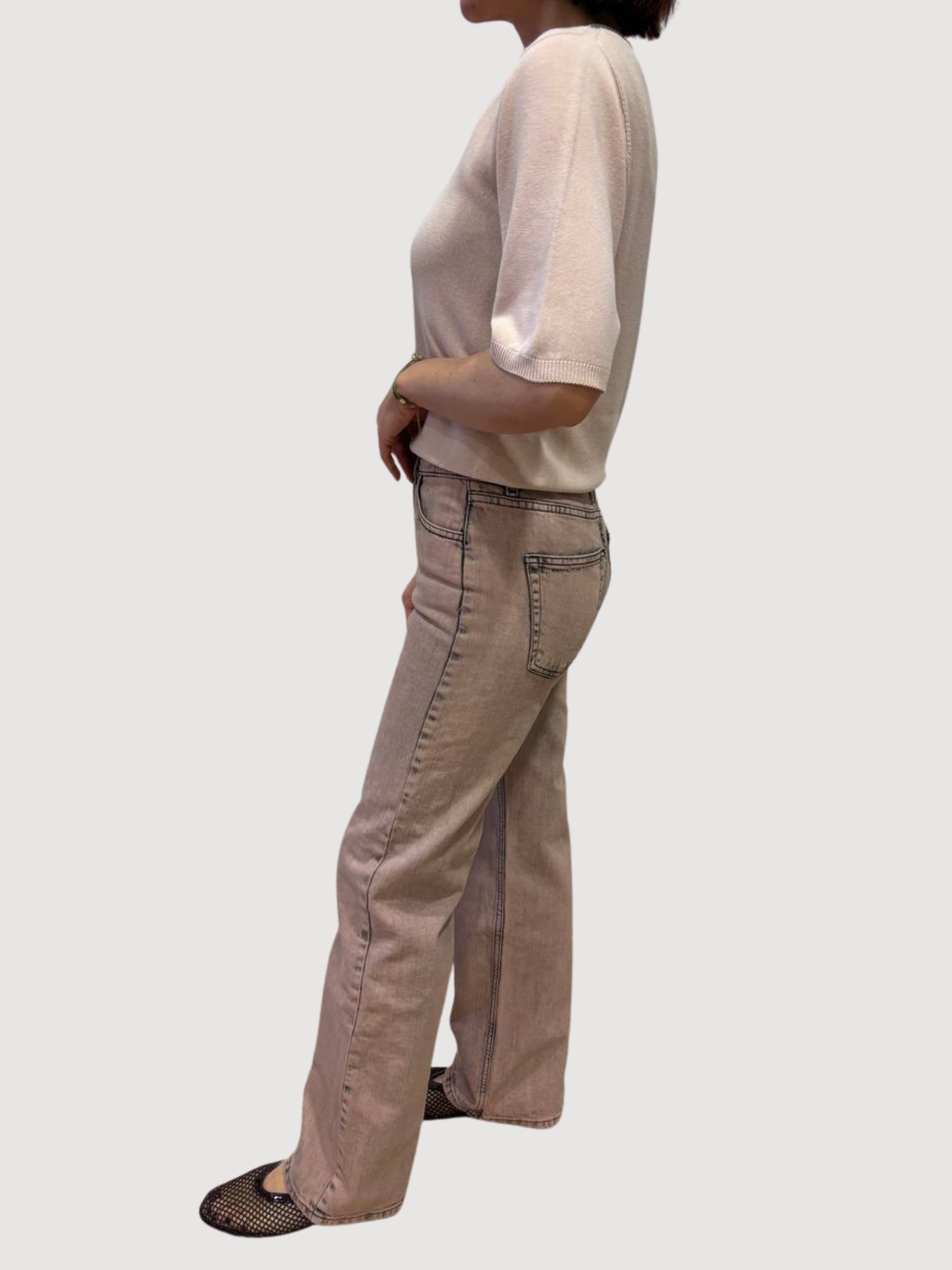 KONTATTO - Jeans Camelia a palazzo dritto rosa.