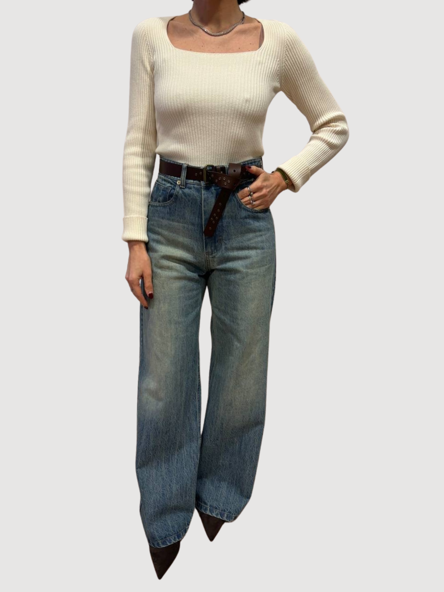 KONTATTO - Maglia a costine burro in misto viscosa con scollo squadrato