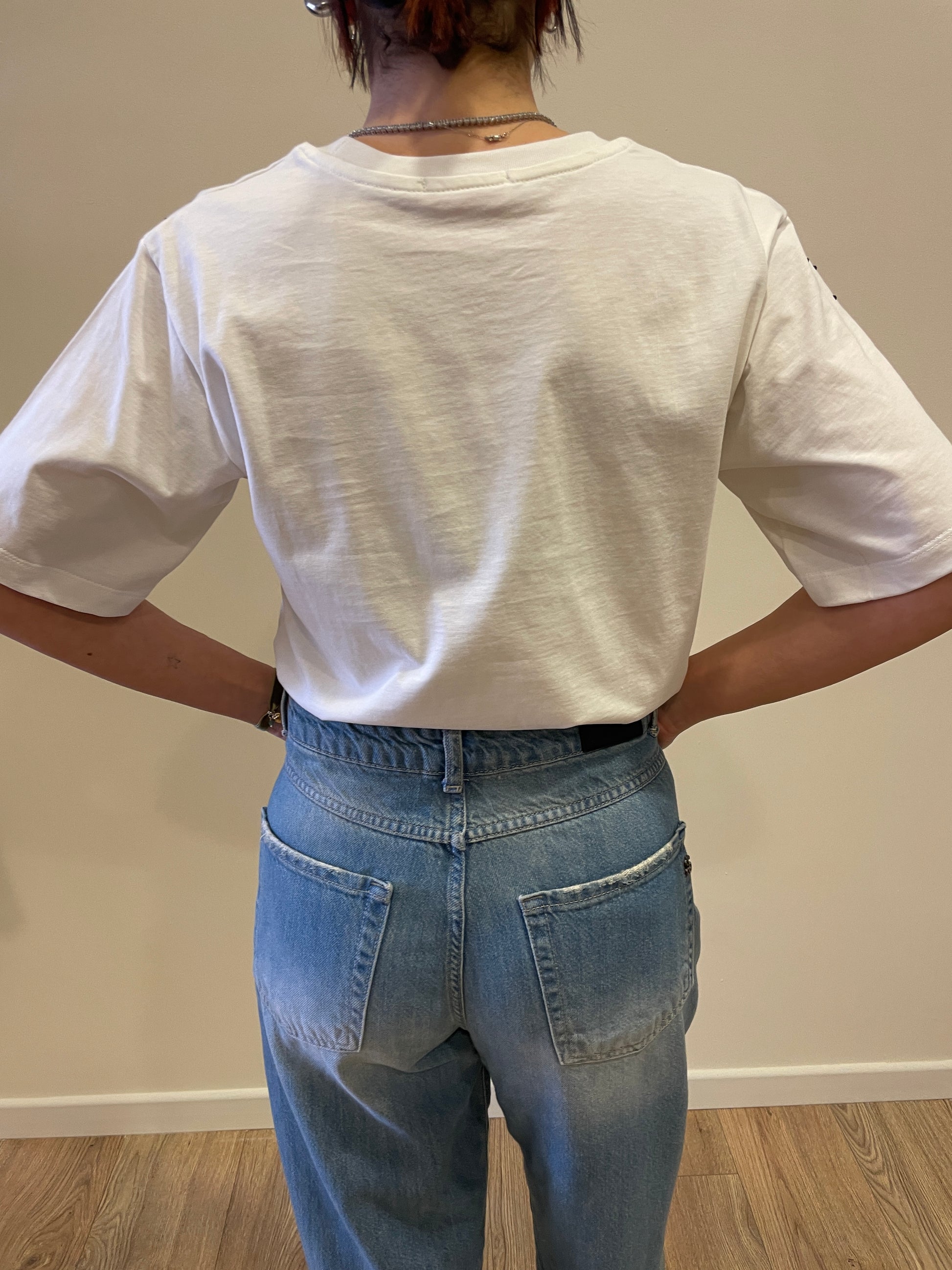 KONTATTO - T-shirt over in cotone con dettaglio applicazioni strass.