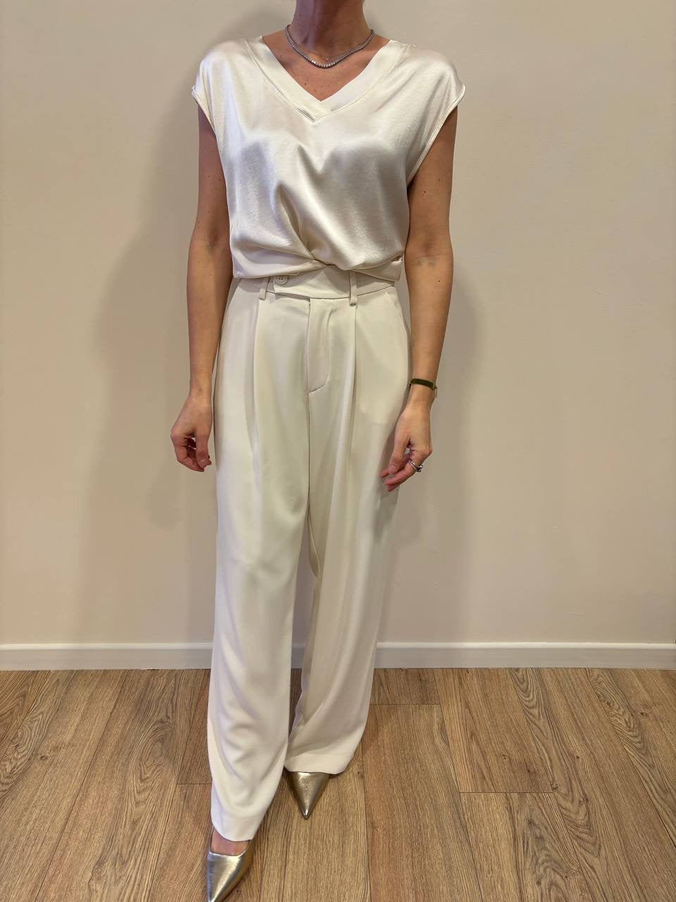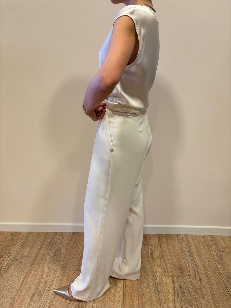 MEME ROAD - Pantalone a palazzo panna con pinces. Vita alta, vestibilità regolare.
