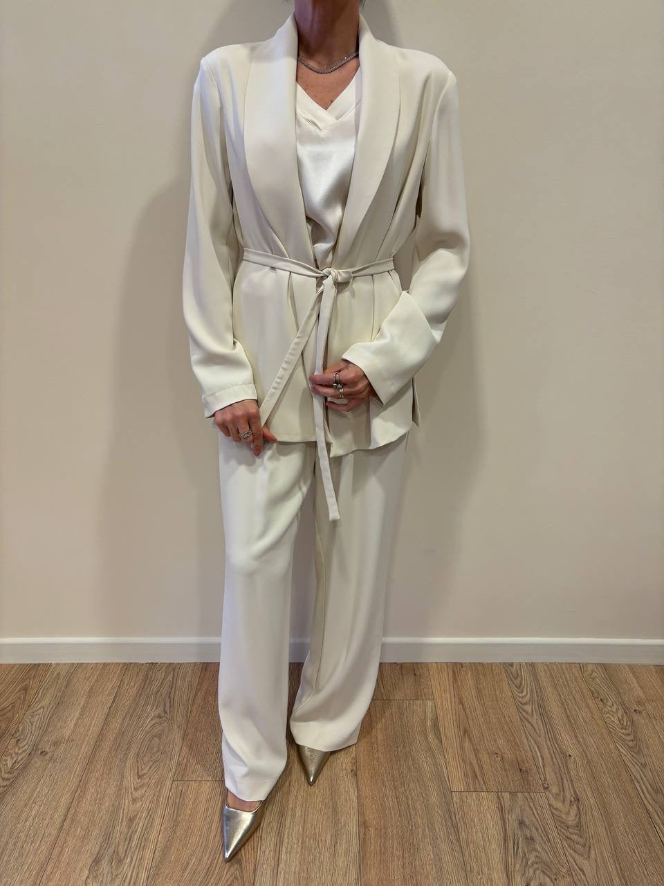 MEME ROAD - Pantalone a palazzo panna con pinces