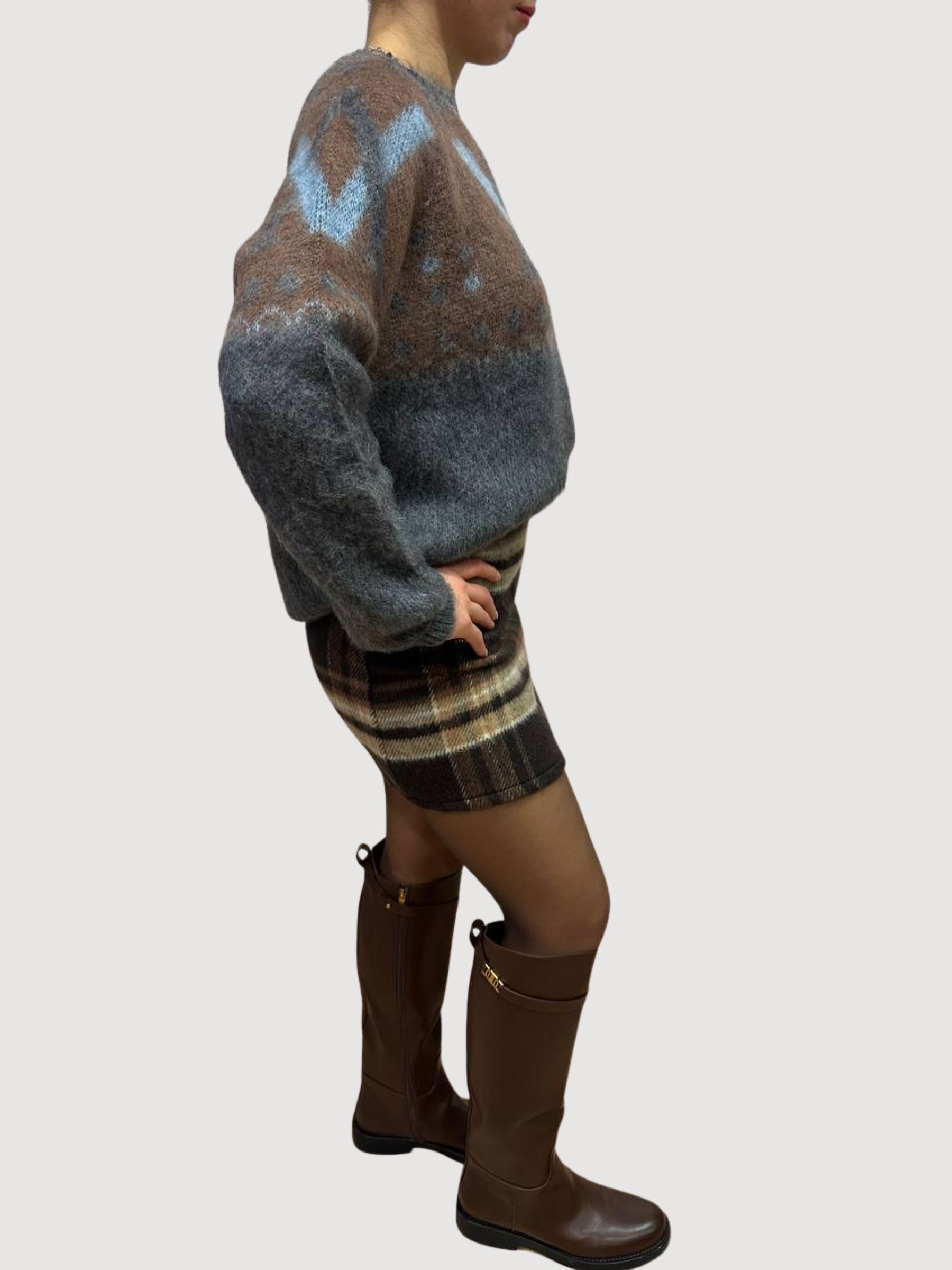 SAIPH - Gonna corta blu a scacchi: moro, burro, biscotto in flanella.