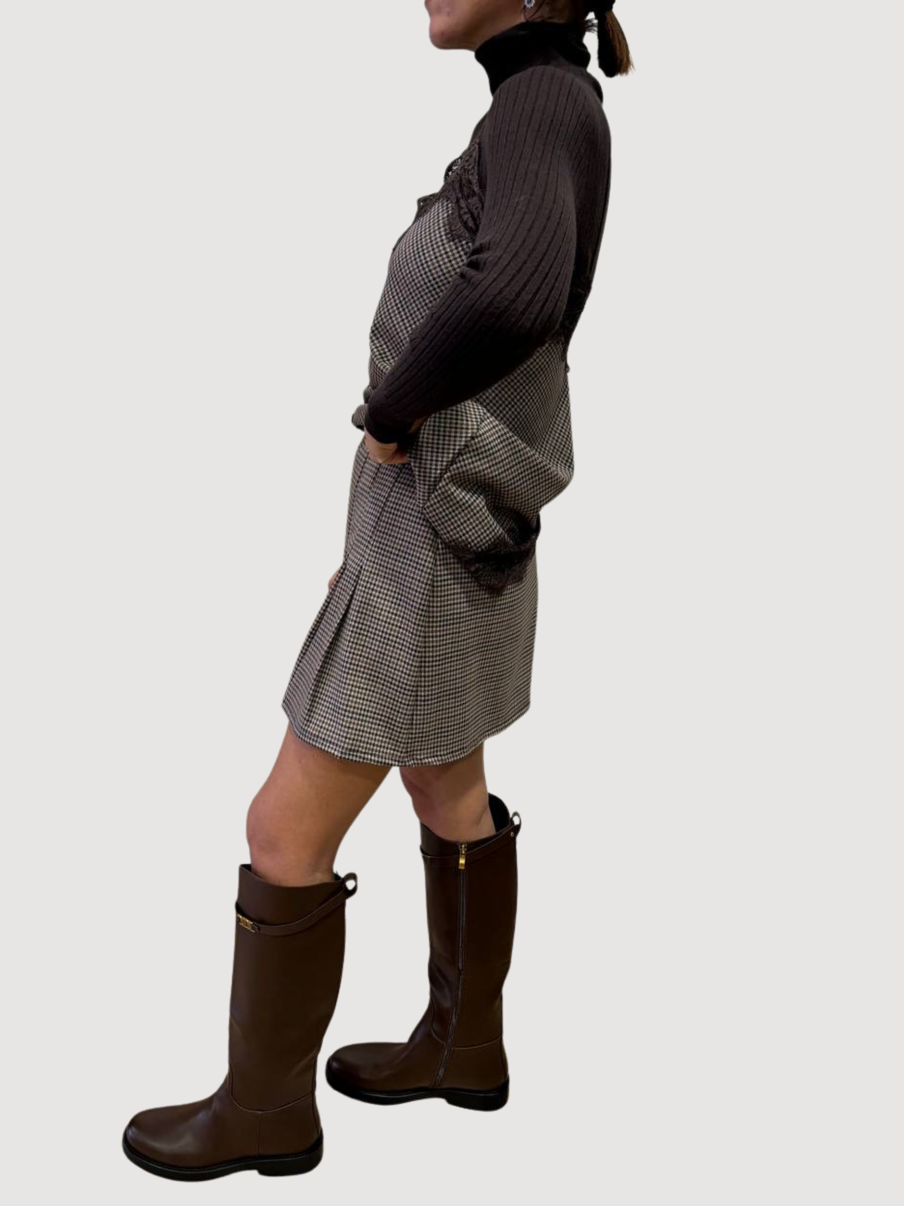 SAIPH - Top check moro asimmetrico con dettaglio pizzo