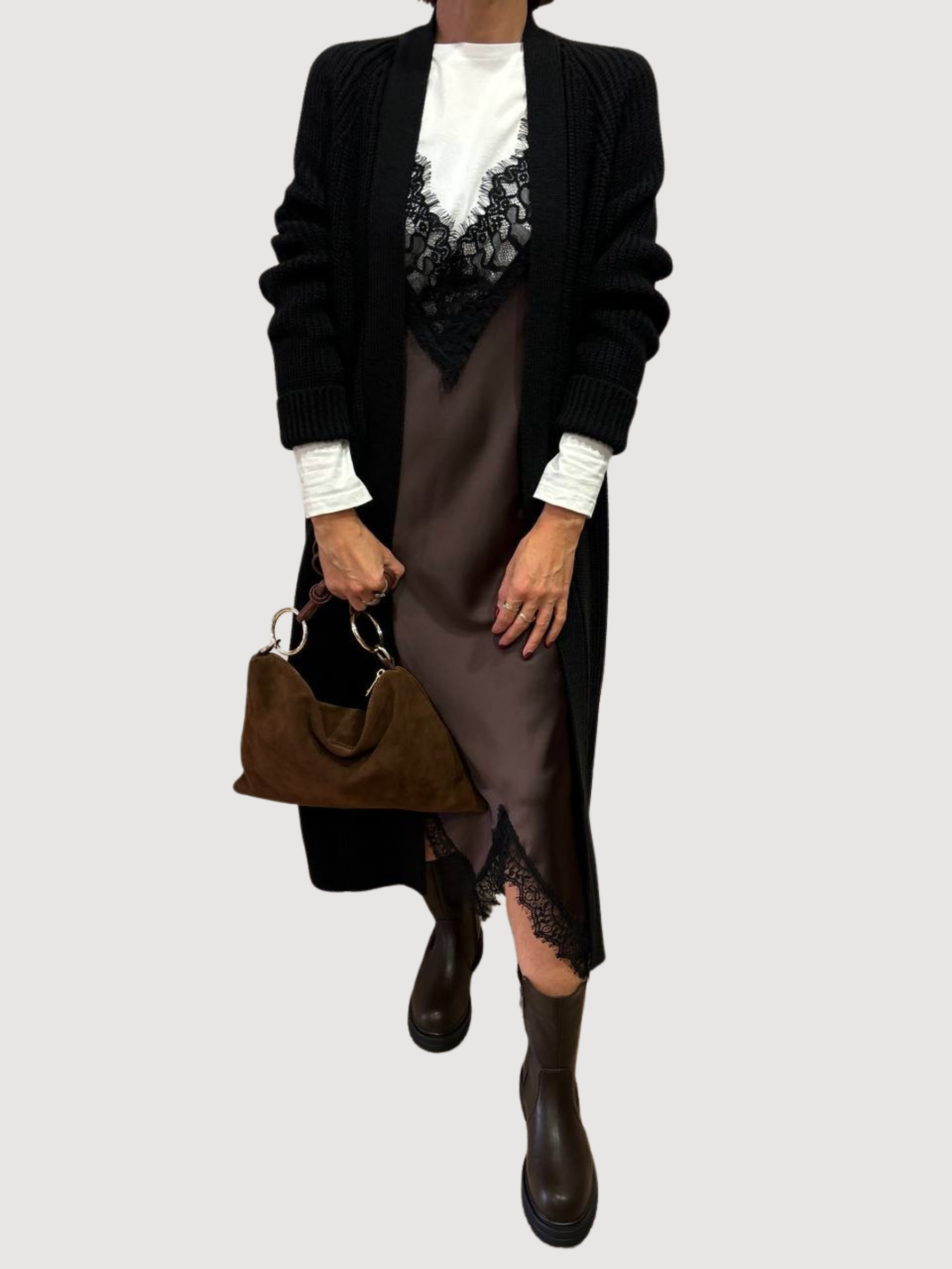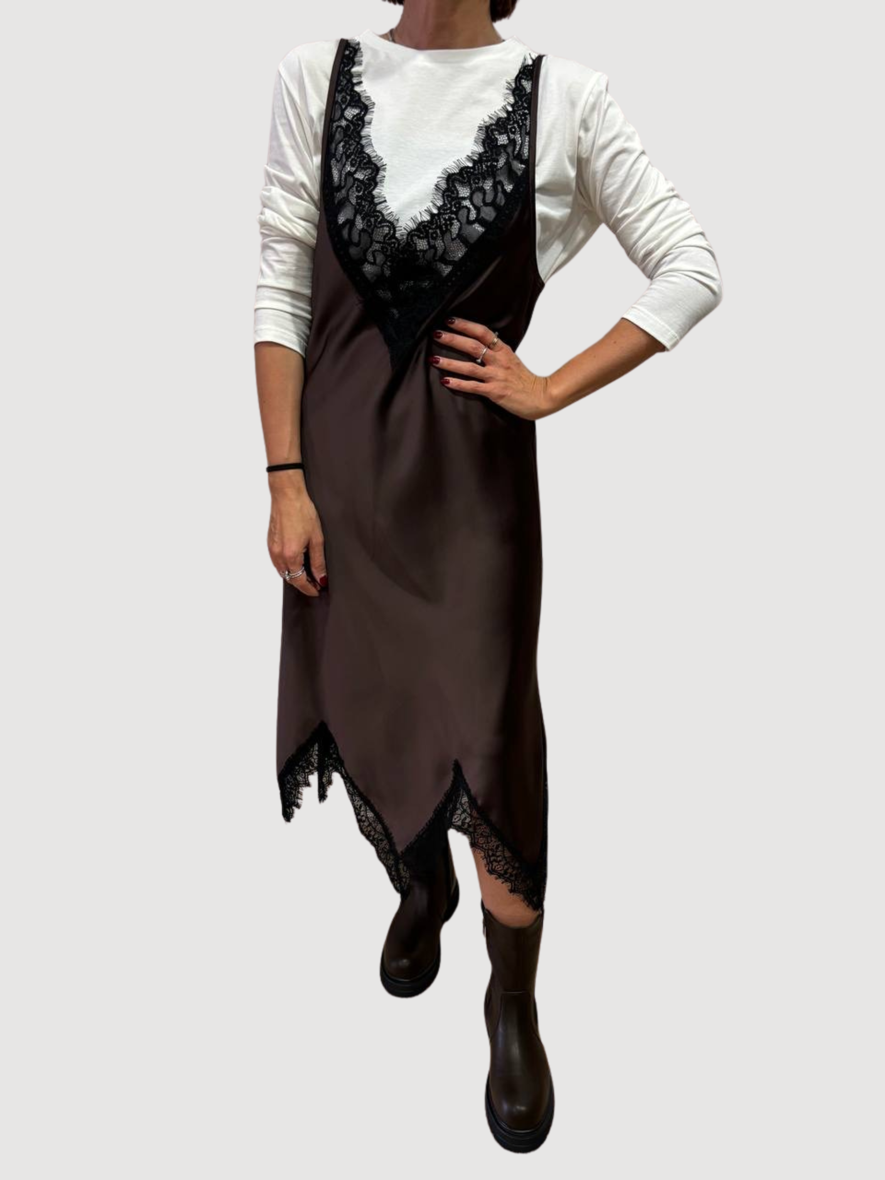 SOUVENIR - Abito testa moro con t-shirt a manica lunga e sottoveste effetto viscosa con pizzo
