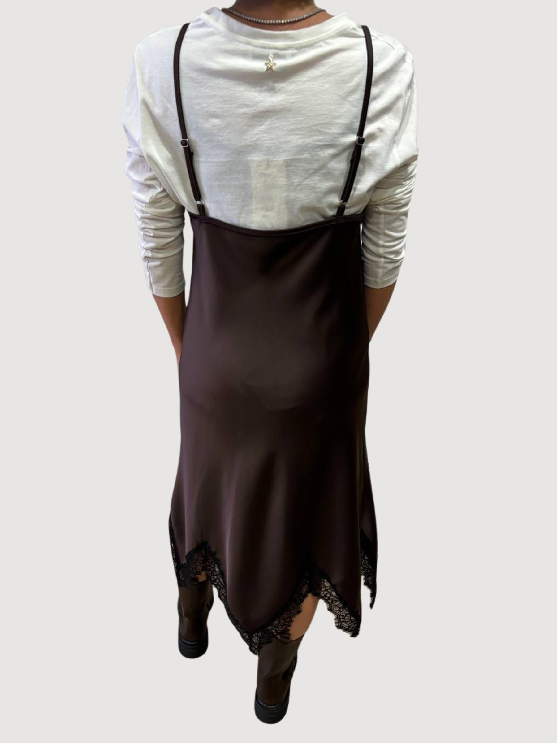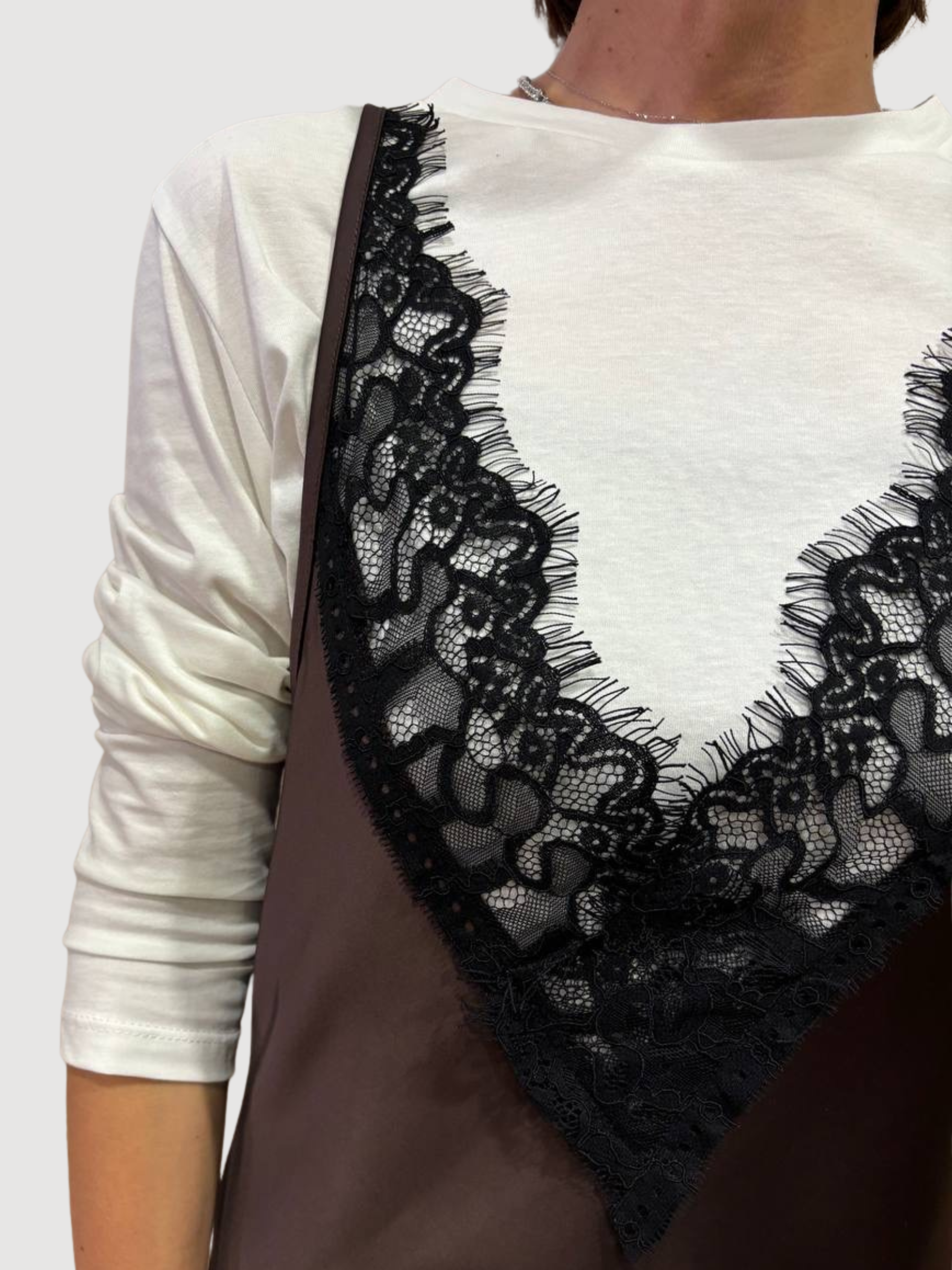 SOUVENIR - Abito con t-shirt a manica lunga bianca e sottoveste testa moro effetto viscosa con pizzo rimovibile.