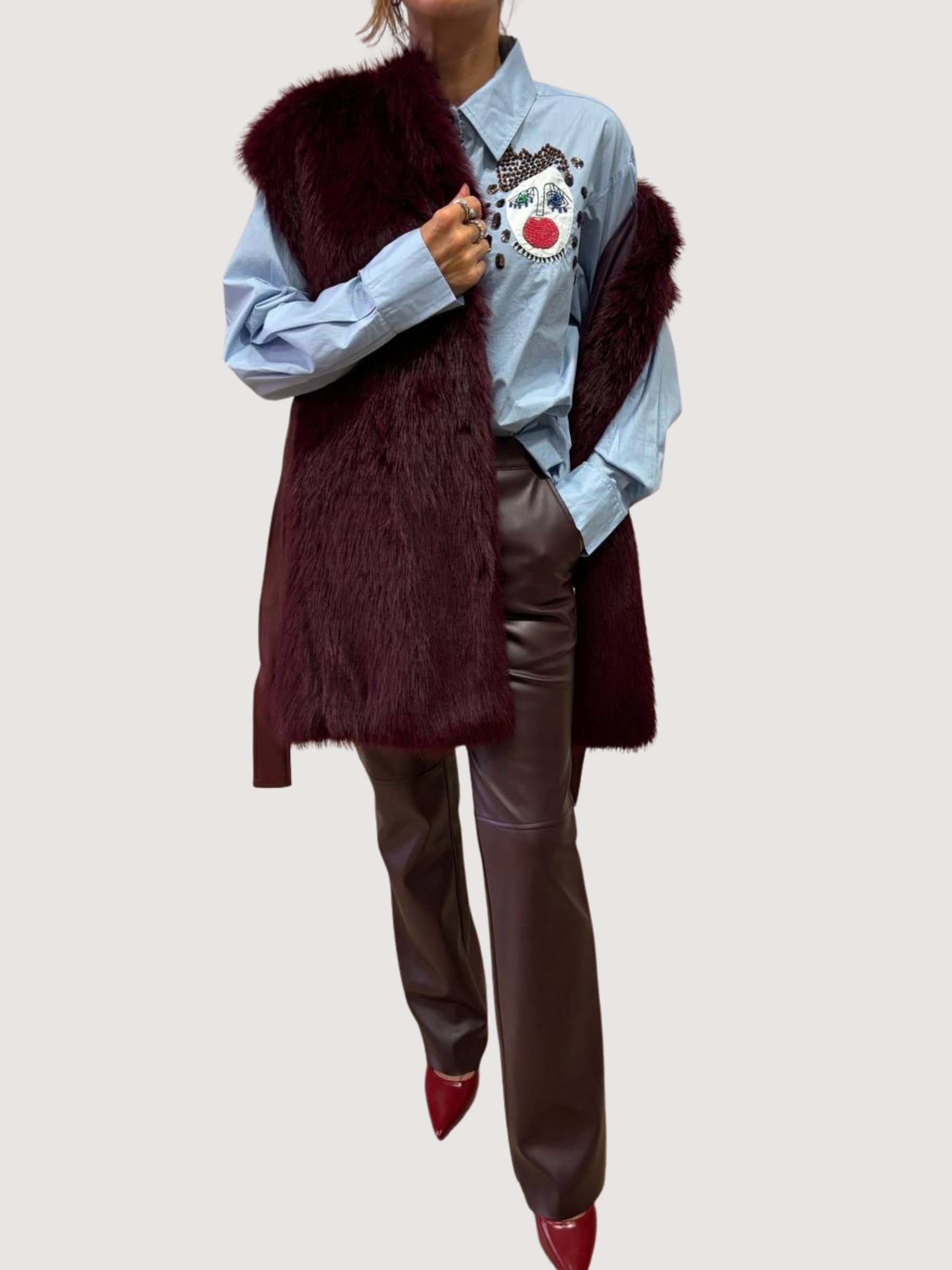 SOUVENIR - Camicia in popeline azzurra con dettaglio stampa di paillettes.