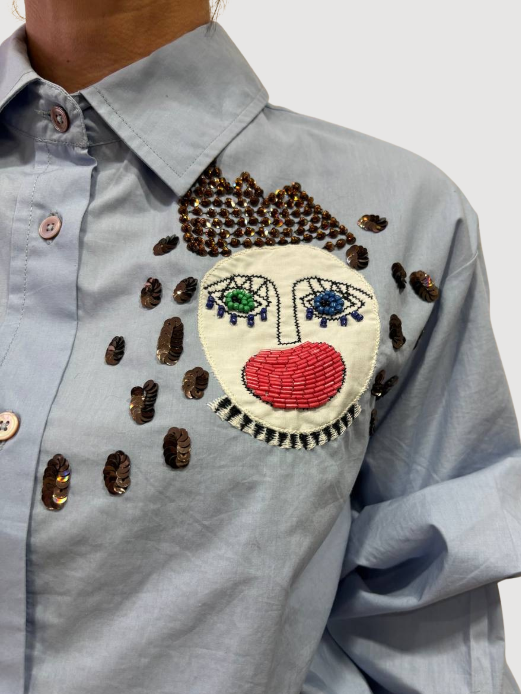 SOUVENIR - Camicia in popeline azzurra con dettaglio stampa di paillettes