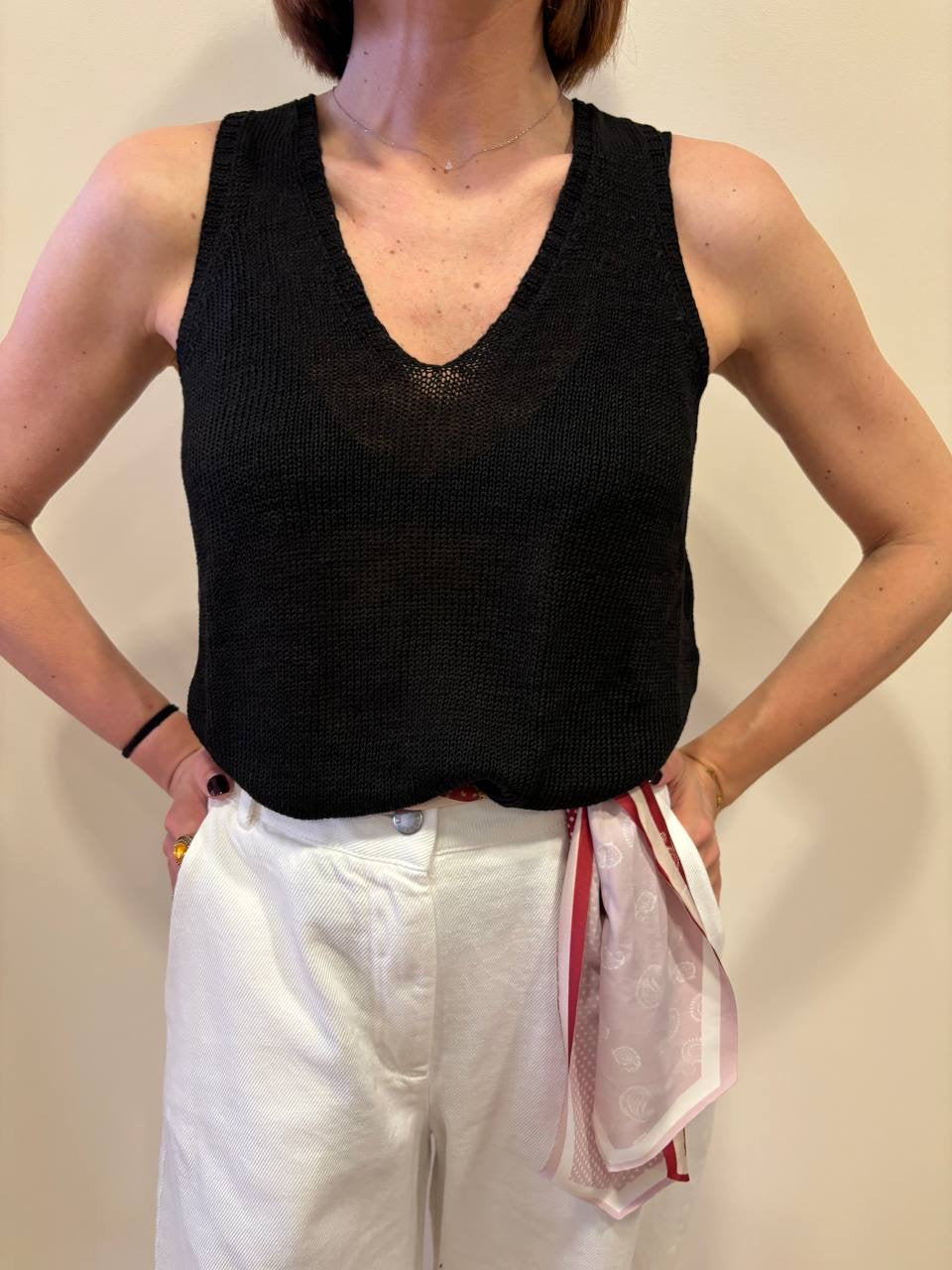 SOUVENIR - Canotta in maglina con scollo a V morbida. Disponibile in nero, corda e cioccolato.