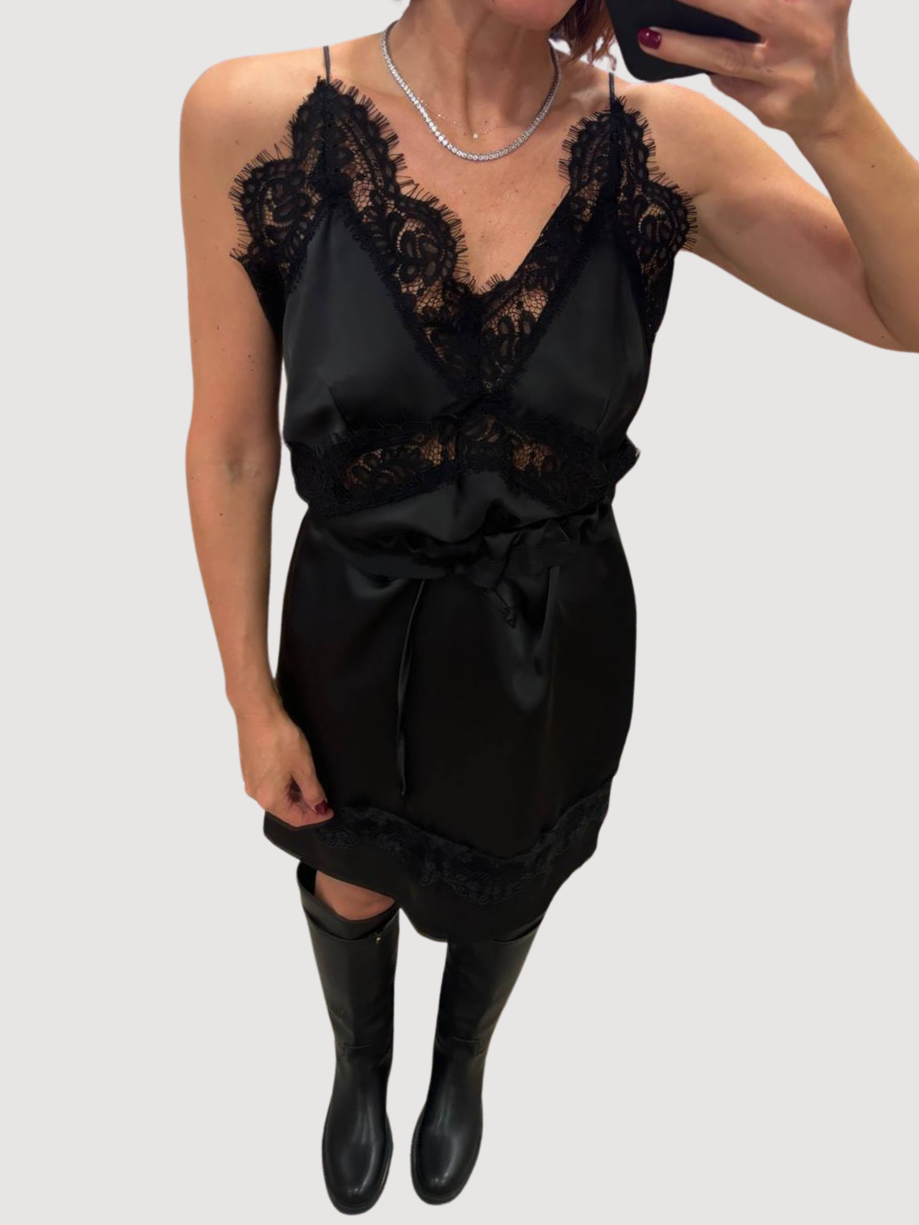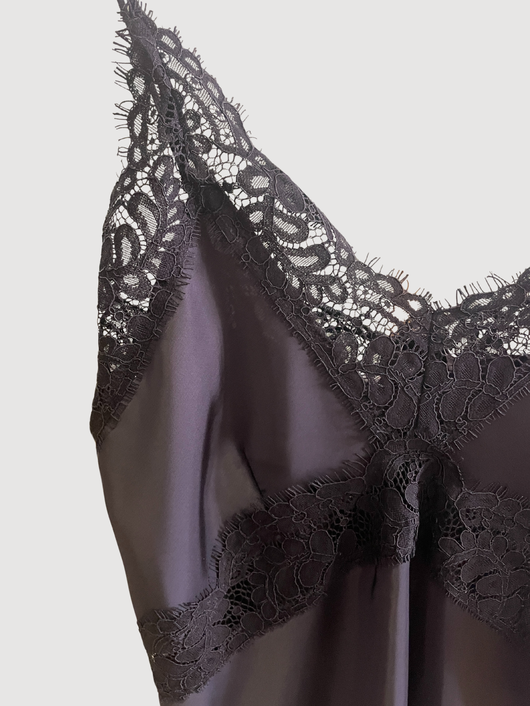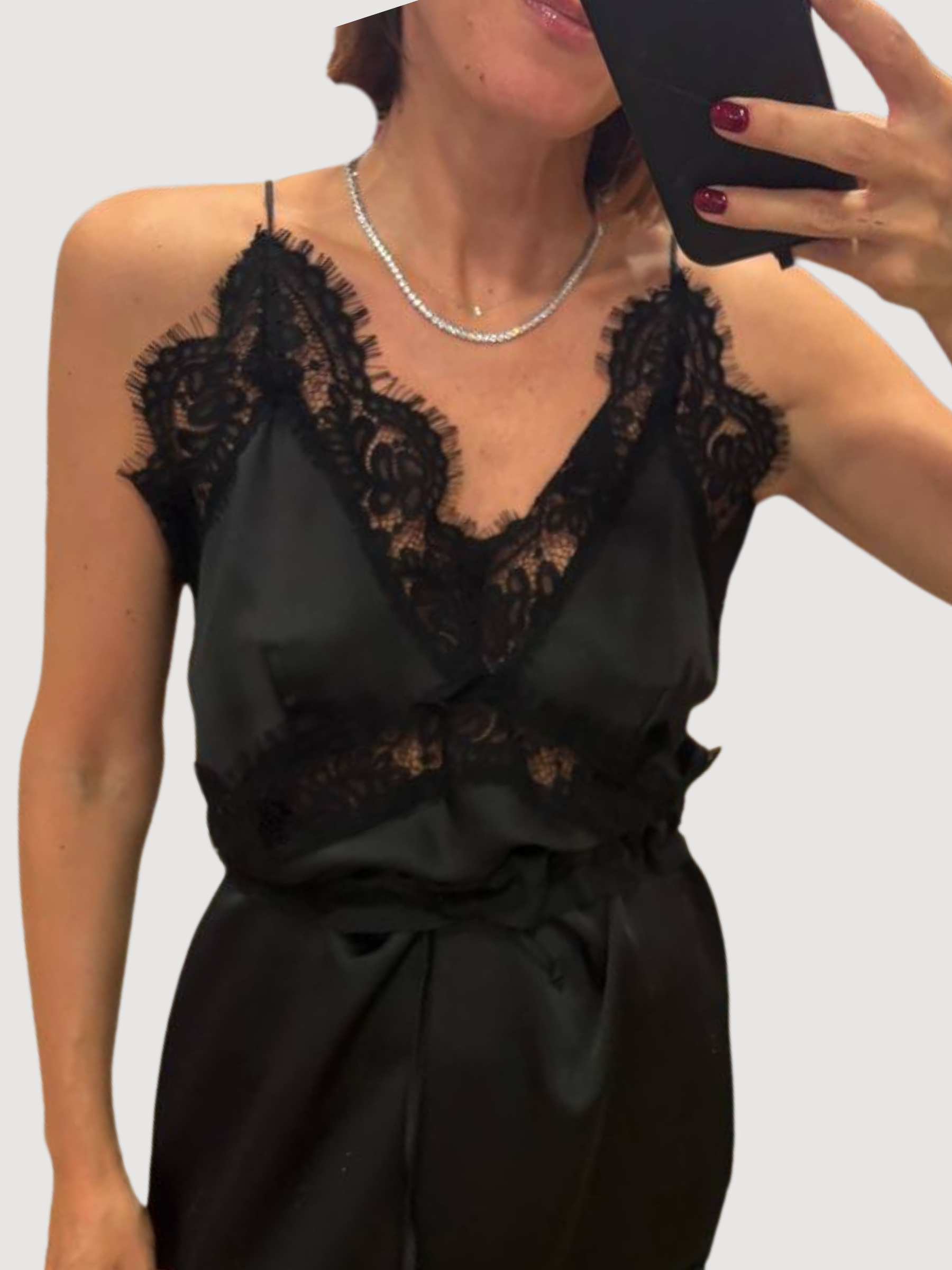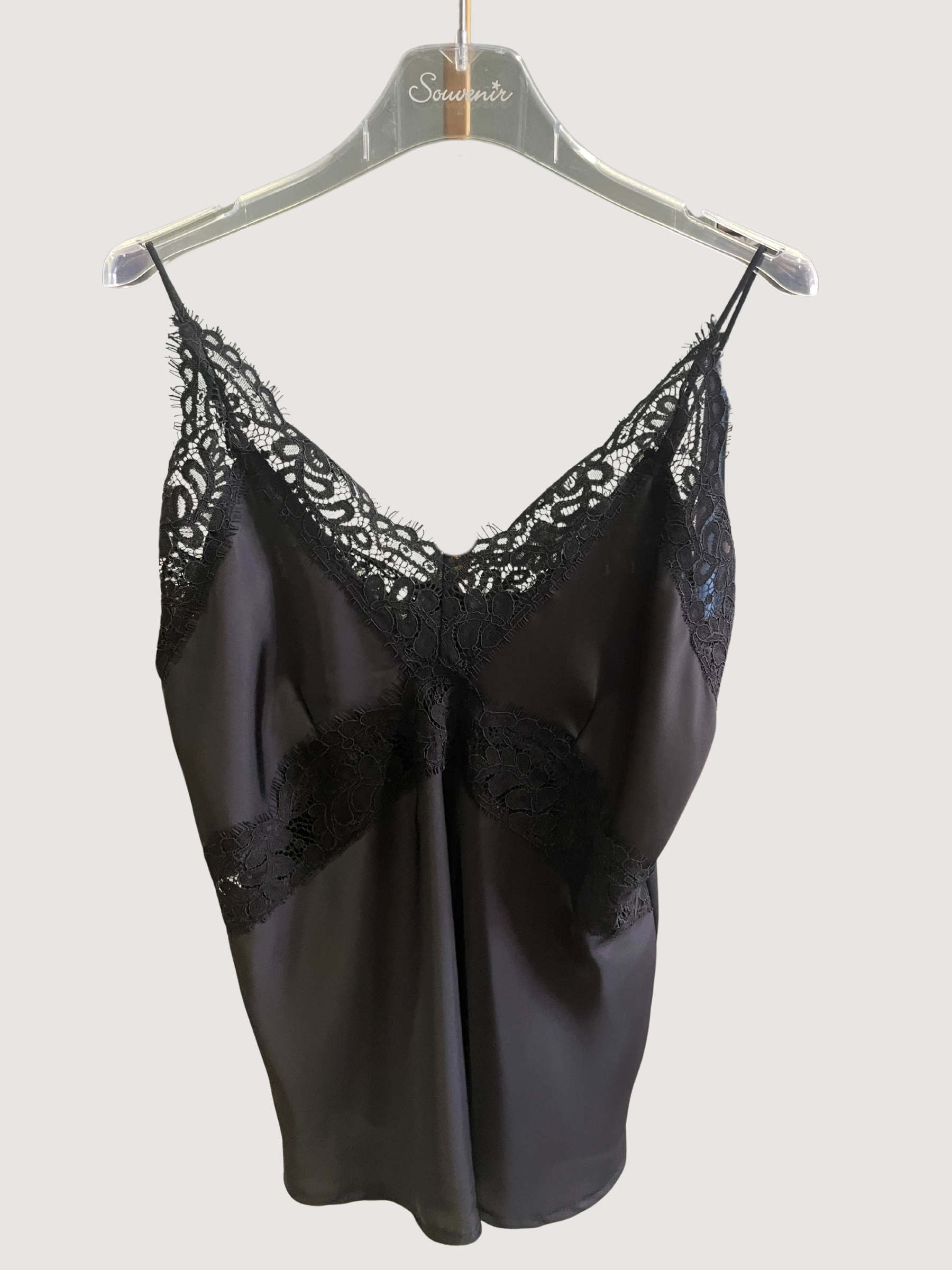 SOUVENIR - Top nero in viscosa con spalline e dettaglio pizzo.