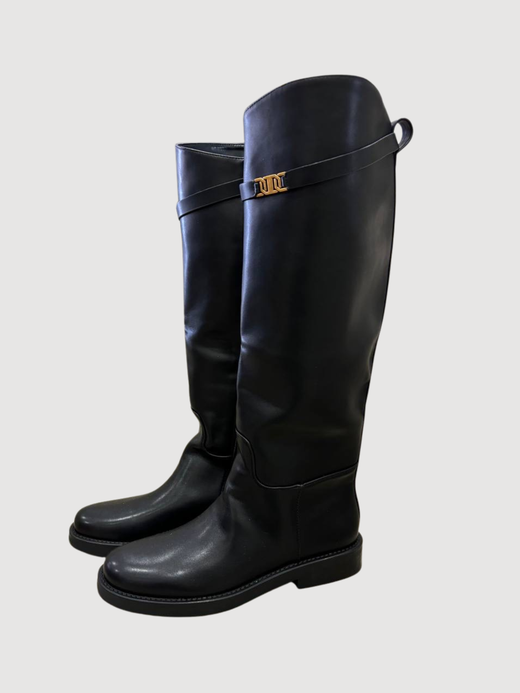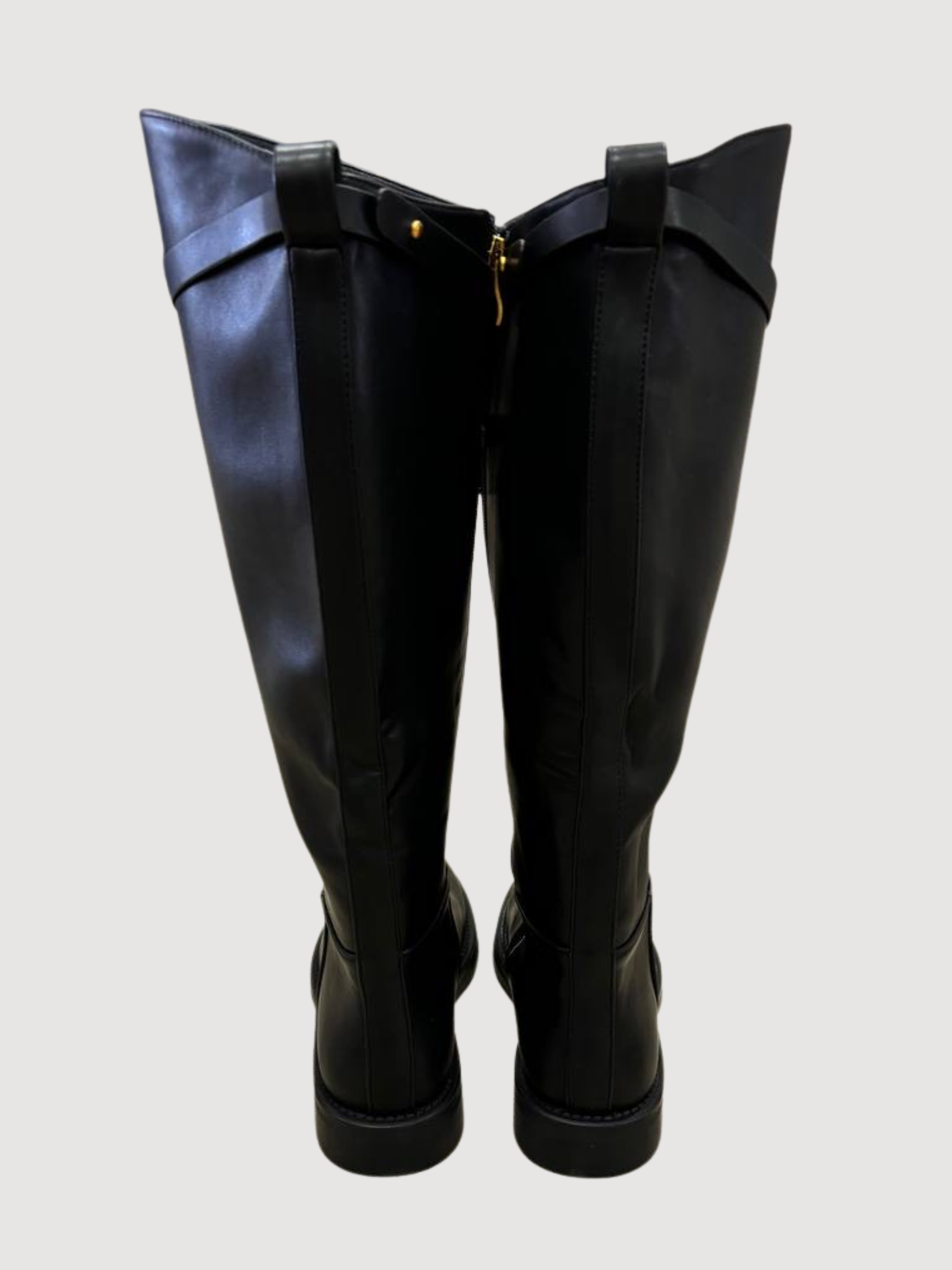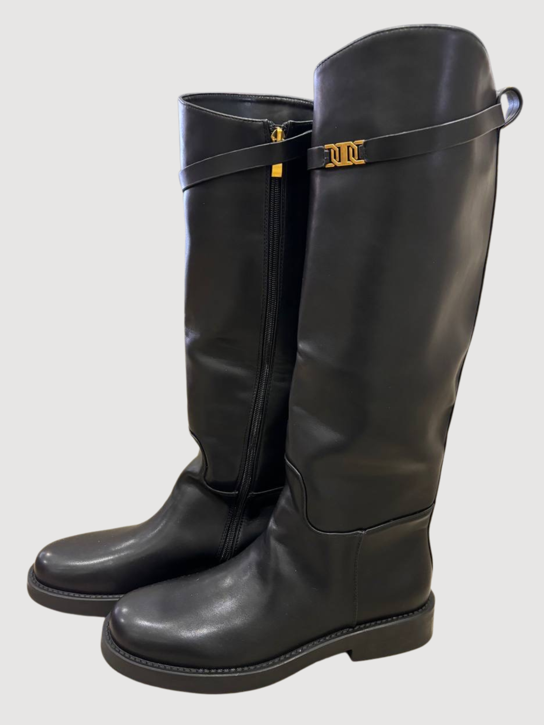 Stivale alto nero in ecopelle con cinturino rimovibile.