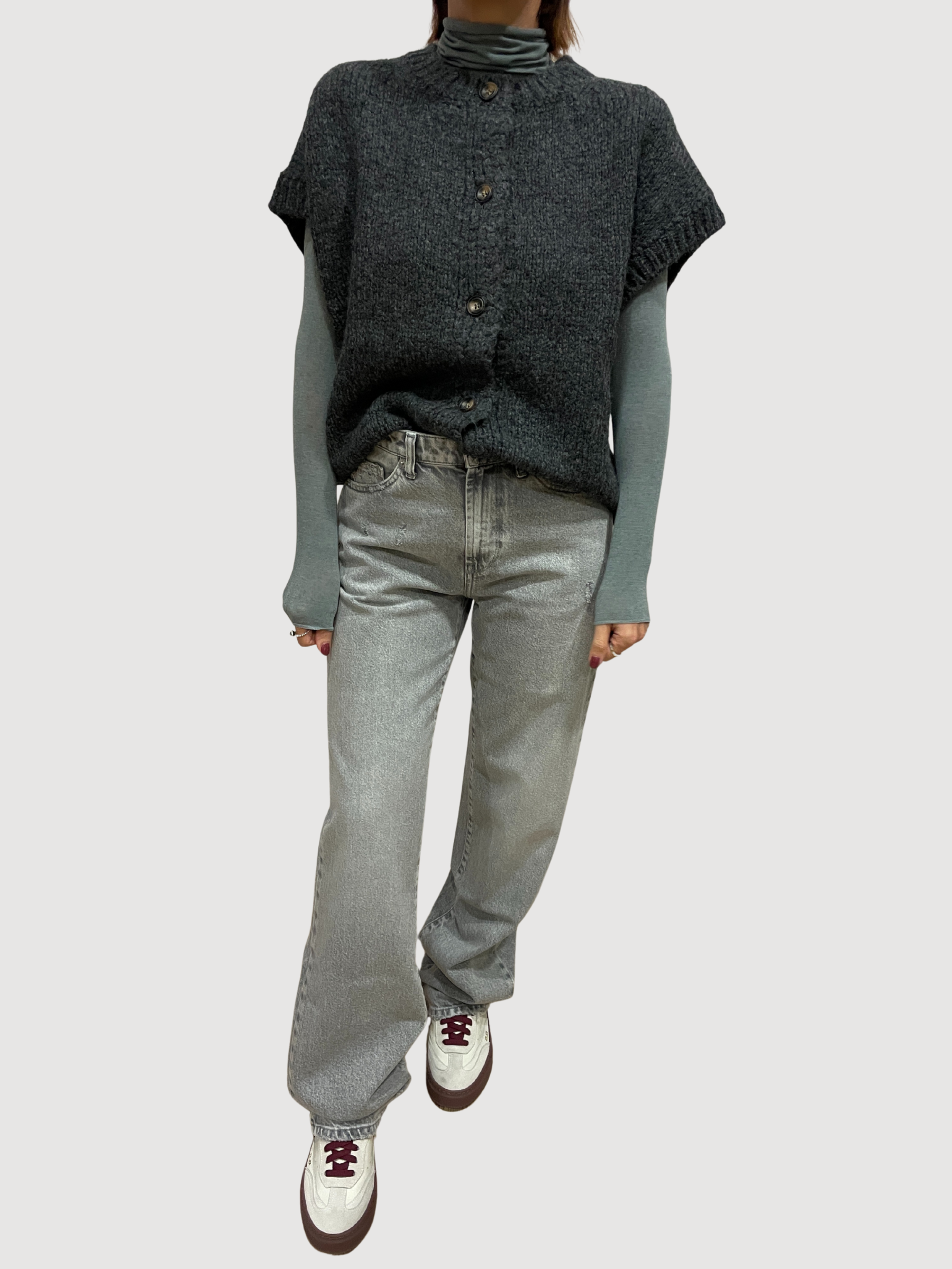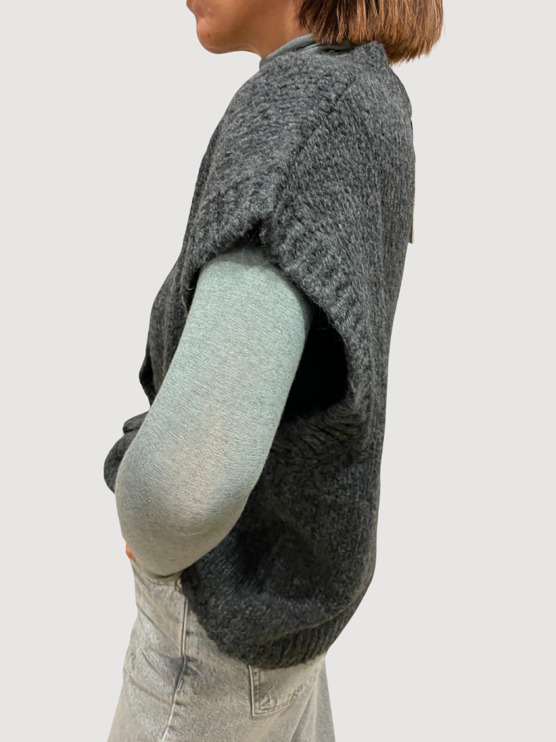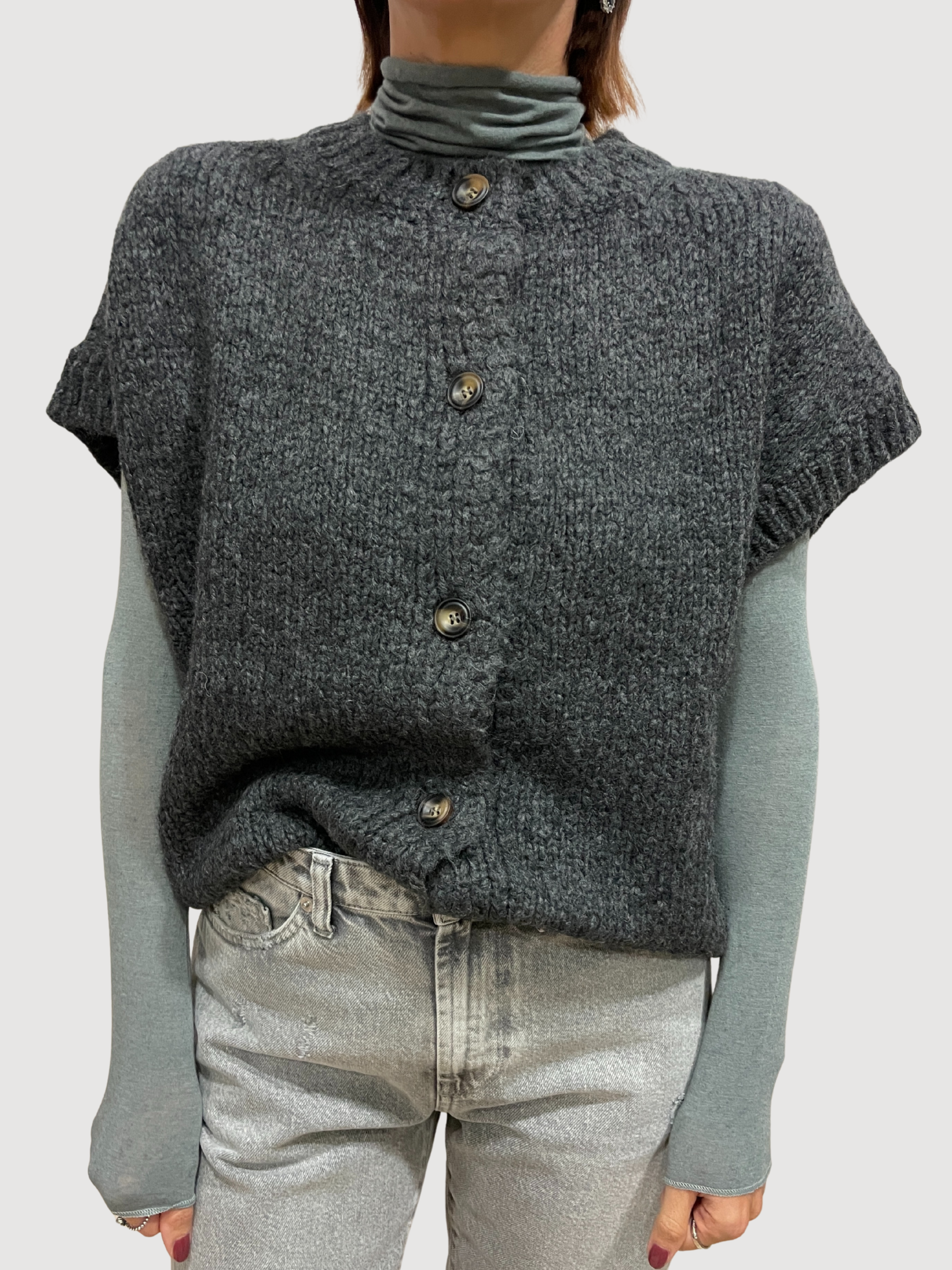 VICOLO - Gilet in maglia a spalla scesa con bottoni. Disponibile in grigio fumo, malva, moro, rosa cipria, burro e nero.