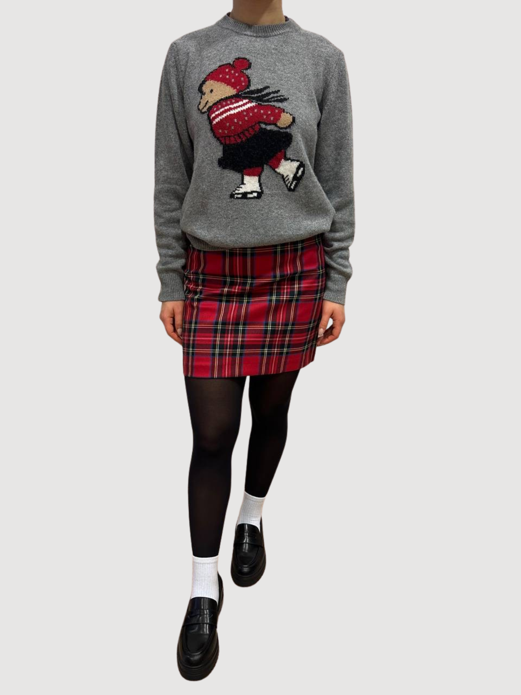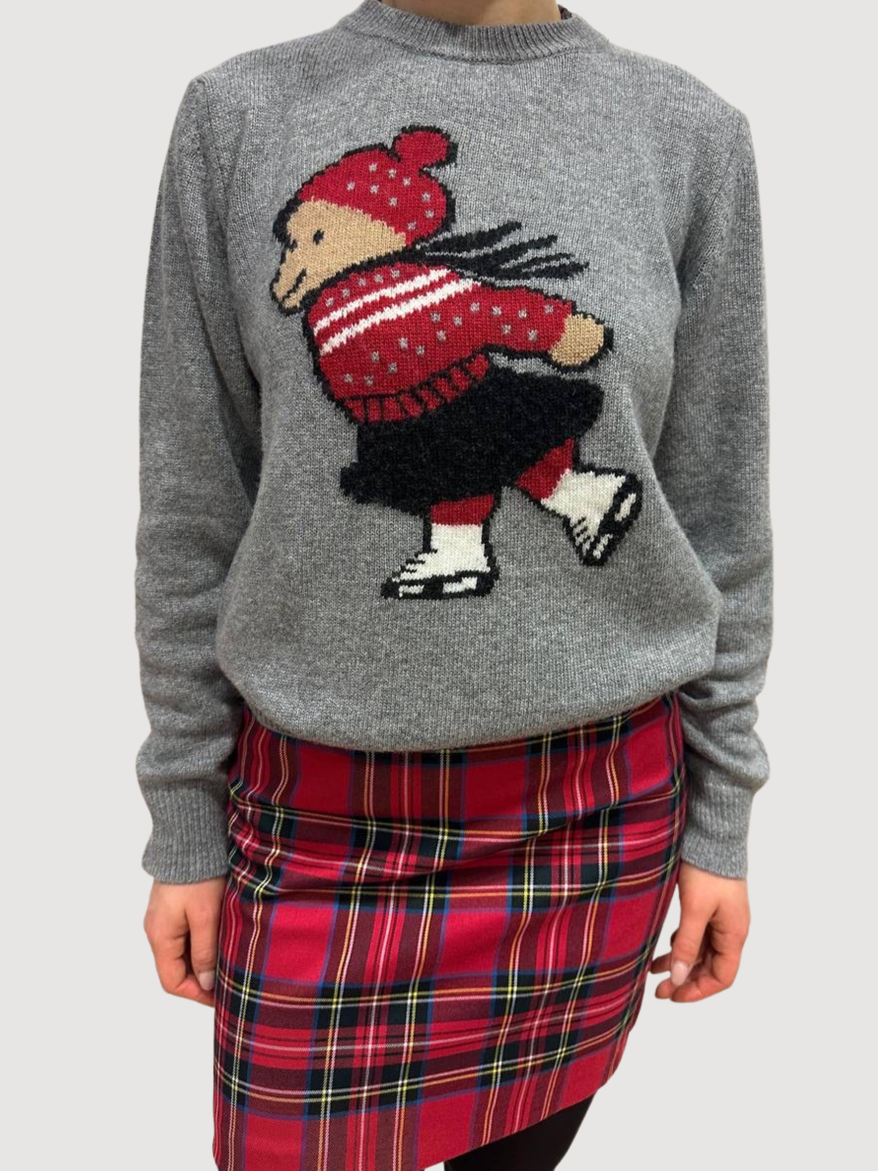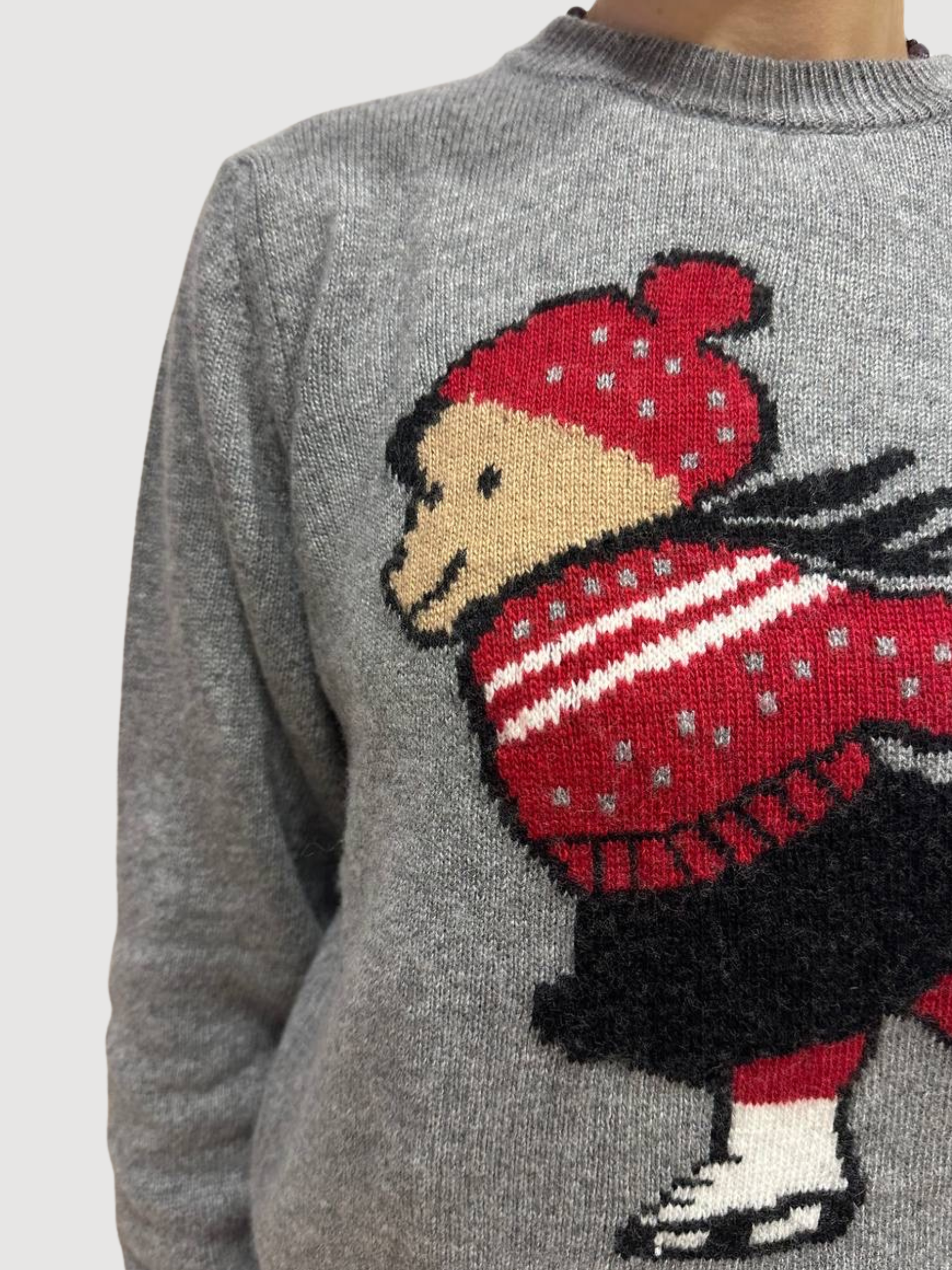 VICOLO - Maglioncino grigio a girocollo con "orsetto pattinatore".