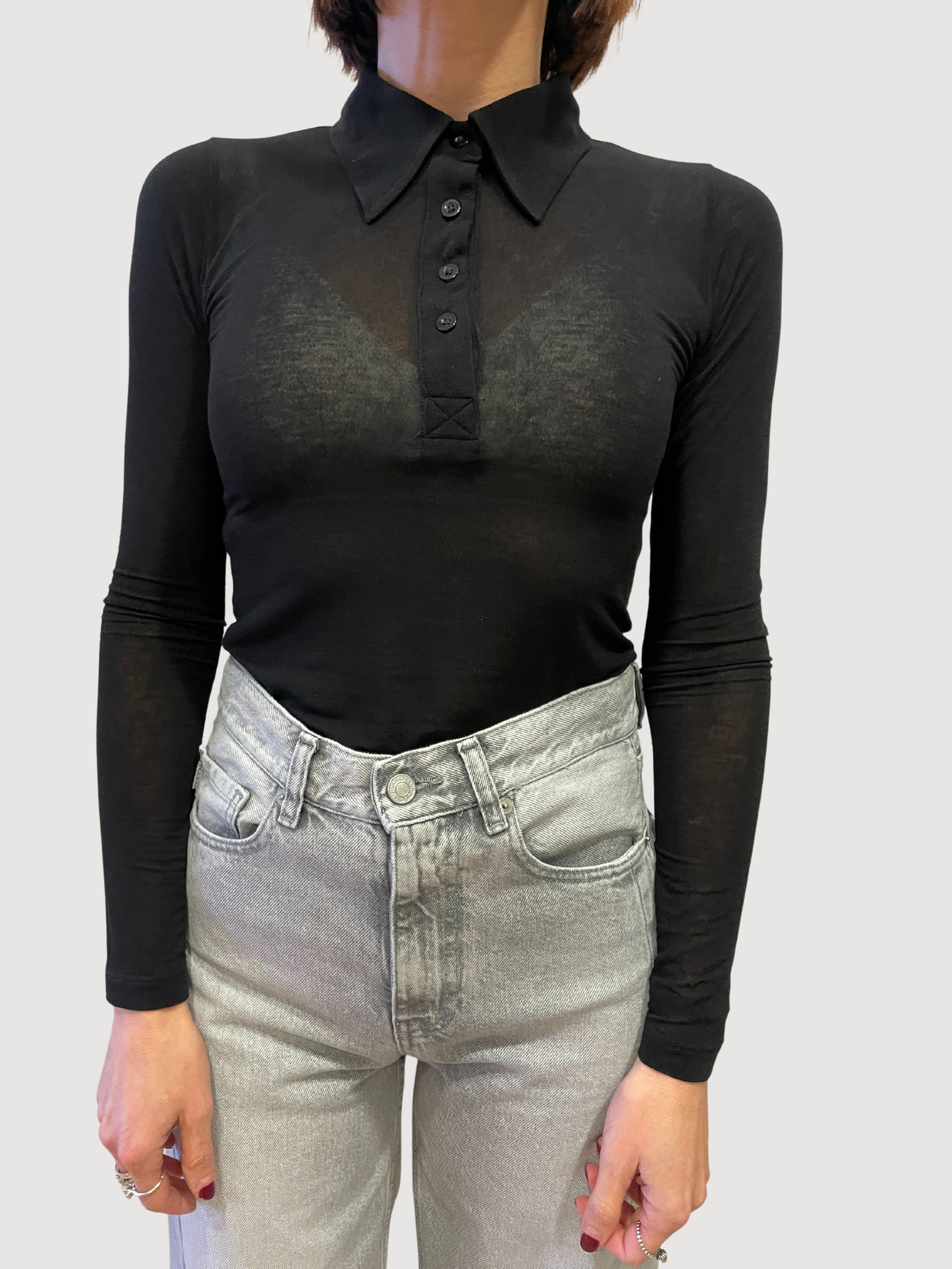 VICOLO - Polo in seta e viscosa con bottoni nero